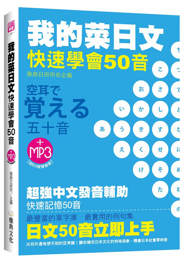 商品描述 | 我的菜日文: 快速學會50音 (附MP3):50音就像是中文的注音符號或漢語拼音,是想開口說日語最必備的條件。為了讓讀者可以在最短的時間內有效率且確實的記住50音,本書特別使 |