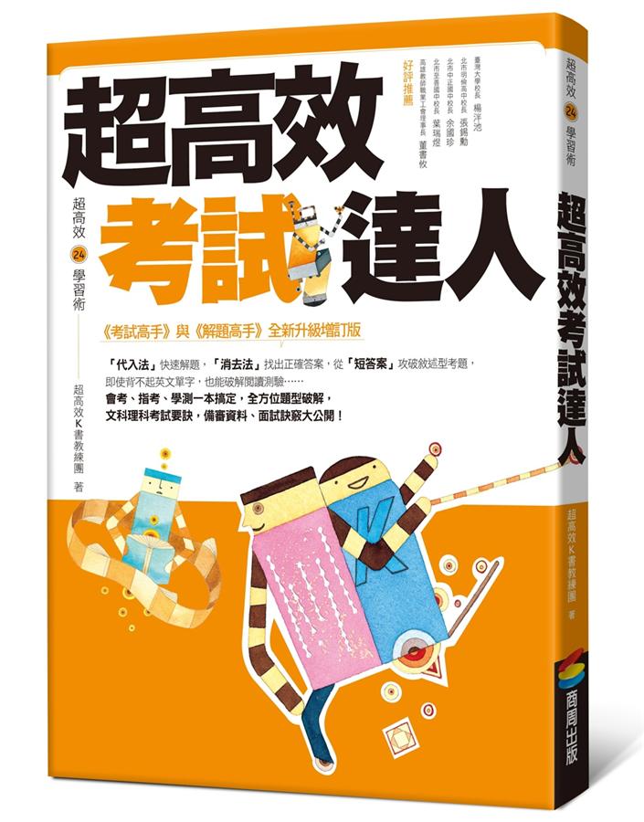 作者介紹 ■作者簡介超高效K書教練團超高效K書教練團為一群對學習及教育充滿愛心及熱情的資深K書高手及考試高手們,包含得獎無數的K書達人、新世代觀念導師、X世代大學教授、暢銷書編輯、資深文字編輯、及超高人氣插畫家。他們自己走過K書及考試的辛苦過程,也在諸多考試競爭中,金榜題名並成績傲視群雄。為了幫助眾多身陷K書及考試難關的莘莘學子,他們貢獻自己的珍貴智慧,系統性整理K書的有效方法,分享考試得高分的獨家秘訣,以活潑生動的方式教考生如何讀書,及如何在短時間內衝高分!另著有《超高效K書達人》。