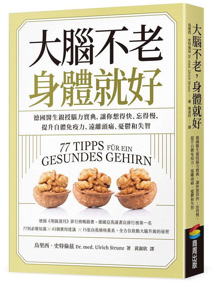 去年我將《77個養成健康心臟的建議》(77 Tipps für ein gesundes Herz)重新整理出版,幫助了許多人達到更理想的健康狀態,所以現在也輪到大腦應該變得更健康。特別是在現今的社會裡,有越來越多人飽受憂鬱症及過勞所苦。單單在德國境內,罹患這兩種疾病的人數就達到大約五百萬左右,就連阿茲海默症、多發性硬化症以及巴金森氏症的患者數目也不斷地增加。這聽起來很糟糕,對吧?傳統醫學在這些文明病的面前,經常顯得束手無策。