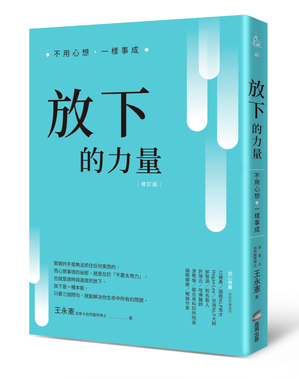 各界推薦 【放心推薦】 國際NLP鬼才/江健勇 台灣NLP大師/Hogan Lee 哈佛醫師/許瑞云 龍合骨科診所院長/游敬倫 暢銷作家/貓眼娜娜 【放心推薦引文】 雖說人能「放下屠刀,立地成佛」,但這句話只講了結果,沒有講到過程。放下屠刀是結果,但要放下的過程卻沒講清楚。要知道,你會「想」到什麼答案,全是因為你問自己的問題所致,而你能不能放下,也被你問自己的問題所主宰。王博士書中的情緒釋放技術,就是用了很嚴謹但卻又很簡單的三個問題,讓你在簡單的自問自答中,不知不覺的就達到「放下屠刀,立地成佛」。 ——國際NLP鬼才大師/江健勇 作者個人多年鑽研於身心靈等諸多專業領域,有著與「放下」之間的奧妙啟發與深入聯想;不僅如此,為了讓讀者們更能理解本書所要闡揚的義理,頗具巧思地,作者還輔以古今中外的經典佳句與名人雋語,以及淺顯易懂、妙趣橫生的比喻或故事;而書中章節裡所附帶的相關「放下」練習部分,更是本書超值之所在。 ——華人NLP推廣教育中心(Taiwan NLP Center)訓練師/Hogan Lee 本書不但闡明了放下人生阻力的方法,更希望告訴人們如何藉此找到心中的渴望,並將它變成可以實踐的決定,進而使生命內在的企圖得以實現,甚至達到心想事成的境界。因此,不論您是想放下身心上的負擔,或是更積極地追求實現生命價值的方法,這本《放下的力量》,都值得推薦給大家參考。 ──龍合骨科診所院長‧台大醫學院附設醫院骨科部教學兼任主治醫師/游敬倫 在心靈能量與心想事成的技術領域,王博士一直帶給我很多啟發與指導。從他身上,我看見了熱衷學習,並且追求突破的精神。很開心看到Dr.Wang的撰著領域從身體層面、內在情緒,揚昇至靈性修為,我相信這絕對會是一本帶領讀者探索自我、提升生命層次的好書!誠如本書所說,真正的創造是從放下開始;放下,往往能給予我們最大的力量,透過本書,相信你一定會與更多人生的美景相遇。 ──暢銷作家‧網路廣播《貓薄荷下午茶》節目主持人/貓眼娜娜