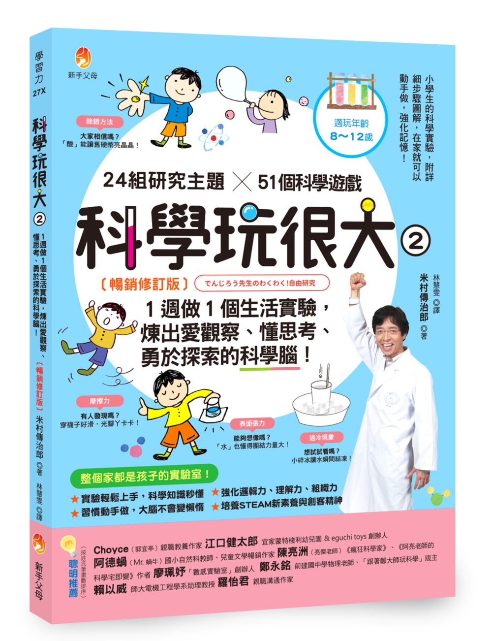 作者介紹 米村傳治郎一九五五年生於日本千葉縣。東京學藝大學研究生院理科教育專業畢業。 曾任職自由學園講師、都立大學教師,亦曾受邀日本NHK電視臺〈我是伽利略!?〉與日本電視臺〈探索近畿大放送〉等節目嘉賓,是個家喻戶曉的老師。一九九八年成立「米村傳治郎science Production」,以能傳播科學樂趣為志業。 現在除了從事科學節目、科學實驗等策劃與開發外,同為相關研究場合、演講、電視節目、書報雜誌等爭相邀約的對象,活躍於各個領域與媒體。林慧雯東吳大學日本語文學系研究所碩士,主修日本文學,副修日本語教育。曾任日文編輯,現為專職譯者。譯有《平穩死:為自己寫下期望的人生結局》等書。