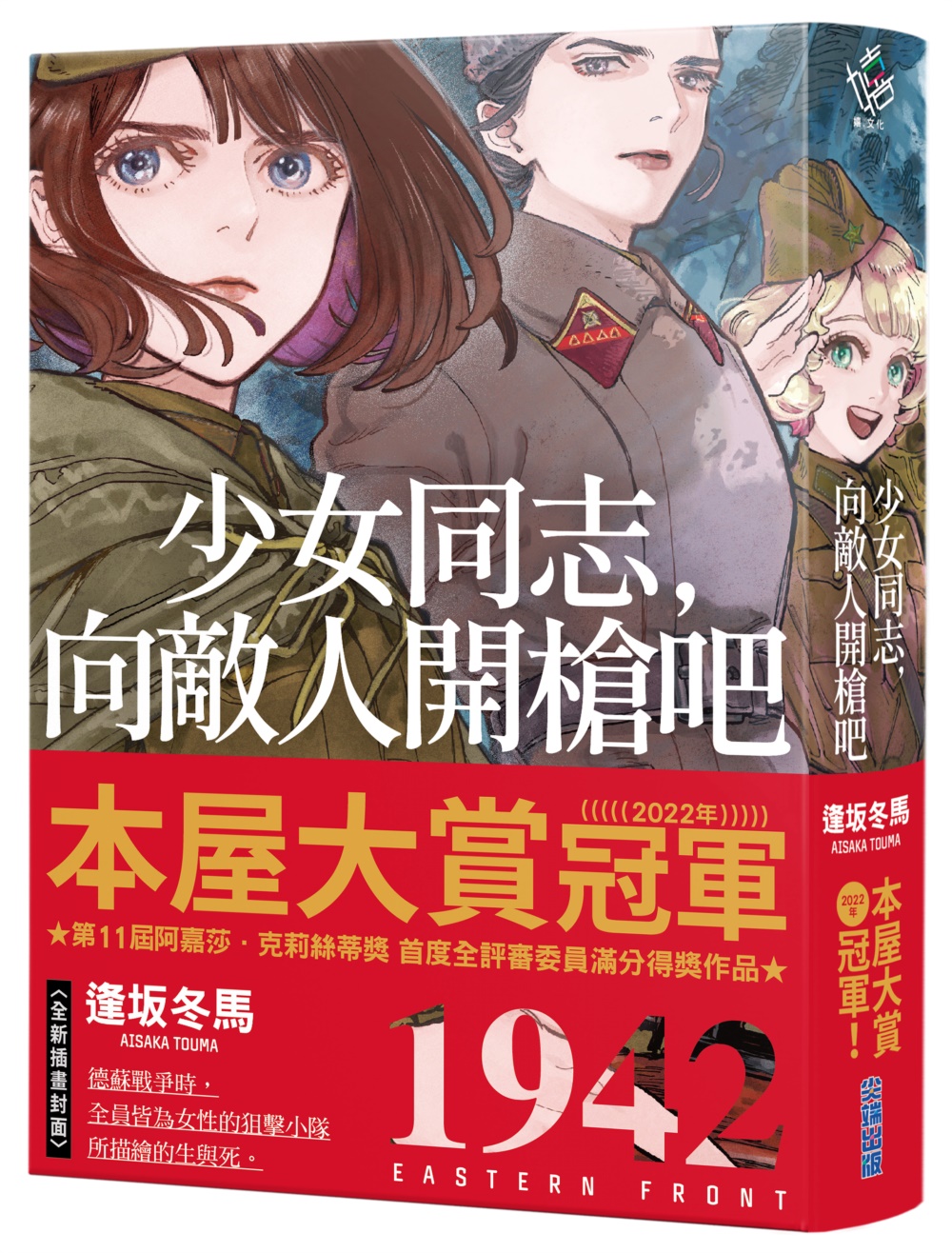 各界推薦 台灣的各位讀者: 本書《少女同志,向敵人開槍吧》是我參加第十一屆阿嘉莎.克莉絲蒂獎的新人獎作品,也是我正式出道成為小說家的處女作。二○二○年當時,我還是上班族,利用工作之餘在家裡寫小說時,做夢也沒想到自己的作品有朝一日會在海外翻譯出版,像這樣與台灣的讀者們打招呼。 我們經常可以聽到「文學能跨越國界」這句話。這句話帶給我莫大的勇氣,我確實也想過如果自己的作品能跨越國界該有多好。另一方面,我也聽過另一種聲音。 自從本書出現在日本的文學市場,許多人都問我同樣的問題,那就是「日本人為何要描寫外國的戰爭?」「這麼做有何意義?」雖然每次我都給出自己內心想到的答案,但我在寫這本書的時候,從未想過將來要面對這些問題。既然文學能跨越國界,那麼作家描寫外國的戰爭需要任何「特別」的理由嗎。 後來發生的事也給了我回答這個問題的提示。 二○二一年十一月,本書在日本出版;二○二二年二月二十四日,俄羅斯攻打烏克蘭。自此,大家討論這本書的時候都會對照此時此刻發生在現實生活中的戰爭,也針對目前正在發生的侵略戰爭問了我很多問題。為了應付這些千奇百怪的問題,我每天都疲於奔命。但與此同時,接受採訪及跟我自己感興趣的人對談的機會也增加了,其中不乏與台灣人交流的機會。 在交流的過程中,我發現台灣人對俄羅斯攻打烏克蘭、在這樣的時空背景下看這本書的角度跟日本讀者略有不同。不只是因為台灣與烏克蘭都受到大國的軍事壓力,具有類似的遭遇,還有對民族及語言都很相近的兩個國家不得不自相殘殺的現實感到強烈的悲憤。 我自己也是這樣,讀者在閱讀海外的文學作品時,經常會脫離作者的預設立場,基於自己國家的背景產生「特殊的閱讀角度」。或許正因為如此,意外的作品才會在意外的國家大受歡迎。 請容我再自我介紹一次,我是日本人,這部作品是描寫德蘇戰爭的小說,從頭到尾沒有出現過一個日本人。即便如此,原本也只在日本出版,所以大部分的讀者都是日本人。 如果台灣的讀者也能基於自己的背景,從中得到自己的閱讀體驗,進而覺得這本書很好看的話,我認為那正是文學跨越國界的瞬間、也是日本作家描寫外國戰爭的意義之一。 非常感謝協助本書翻譯、出版的人員,尤其是尖端出版與責任編輯楊先生、負責翻譯的緋華璃。 當然還有拿起這本書的各位讀者,在此向大家致上最深的謝意。 二○二二年九月 逢坂冬馬 【日本各方名人推薦】 這本書並非歌頌英勇事蹟,而是講述成為狙擊兵的少女失去了什麼、又得到什麼的作品。──桐野夏生(作家) 並不是希望能被更多人看到!而是無疑會被更多人看到的傑作!——小島秀夫(遊戲設計師) 動作場面的緊張感、張力、構成之巧妙都令人嘆為觀止。──北上次郎(書評家) 始於復仇之心的故事同時也勾勒出隊員間的姊妹情誼,呈現出波瀾壯闊的劇情,令人胸口為之一緊。──鴻巢友季子(譯者) 這個故事的一切都濃縮在令人跌破眼鏡的結局裡。──法月綸太郎(作家) 最後,彷彿被射出的子彈打中一般,滿腔的熱血無法平息。眼前強烈的姊妹之情使我呆然不已。──小橋めぐみ(演員) 「向敵人開槍吧」中的敵人到底是何方?我想這應該是每位讀者都會在心裡自問的問題吧。──沼野恭子(俄羅斯文學研究者) 透過女性在槍後的視角所看到的戰爭,是一個前所未見的世界!戲劇張力、書中想傳遞的訊息,更重要的是女性間的羈絆讓我深受感動。── 山崎まどか(專欄作家) 這種興奮感和我第一次閱讀《虐殺器官》時一樣。── 塩澤快浩(早川書房)