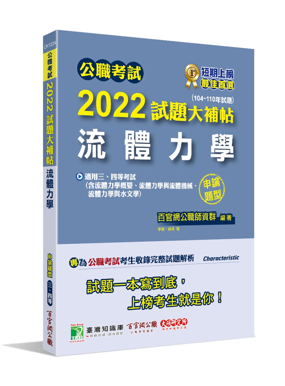 商品描述 | 公職考試2022試題大補帖: 流體力學 (104-110年試題 申論題型 三等 四等 高考 普考 地方特考 鐵特 技師):【試題大補帖系列熱賣中!】不容錯過的上榜必備好書在這裡!精選多 |