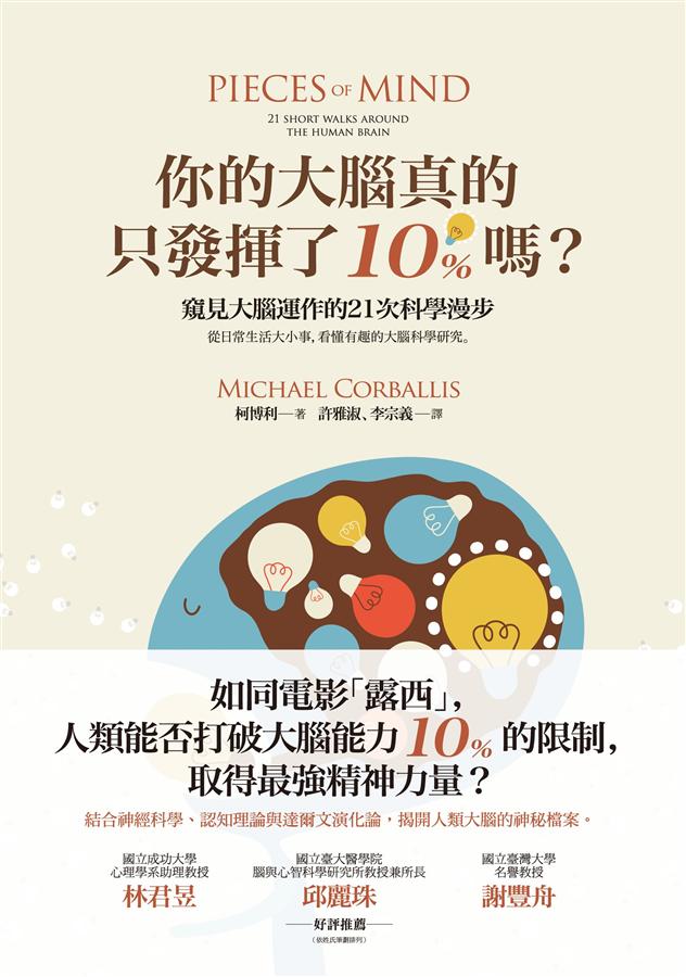 作者介紹 ■作者簡介柯博利(Michael Corballis)1936出生於紐西蘭馬頓,為奧克蘭大學心理系的退休教授,同時也是傑出的科學傳播專家,曾接寫過《從手到嘴巴:語言的起源》(From Hand to Mouth: the origins of language, 2003),以及最近出版的《心智迴圈:人類語言、想法與文明的起源》(The recursive Mind: the origins of human language, thought, and civilization, 2011)。「紐約時報」讚譽柯博利可以說出「迷人的故事」,「美國科學家」雜誌也讚揚他的作品「大開視野且充滿娛樂性」。■譯者簡介許雅淑台灣大學圖資系、清大社會所畢業,現為清大社會所博士生,終日與字為舞,熱愛翻譯與寫作,為專職文字工作者。目前有多本翻譯作品,包括《故事如何改變大腦》、《拍立得:不死的攝影分享精神》以及《世界鐵道歷史200年》等。李宗義目前從事災難與風險的研究工作,從事多年兼職譯者,有多本翻譯作品,包括《故事如何改變大腦》、《拍立得:不死的攝影分享精神》,以及《世界鐵道歷史200年》。