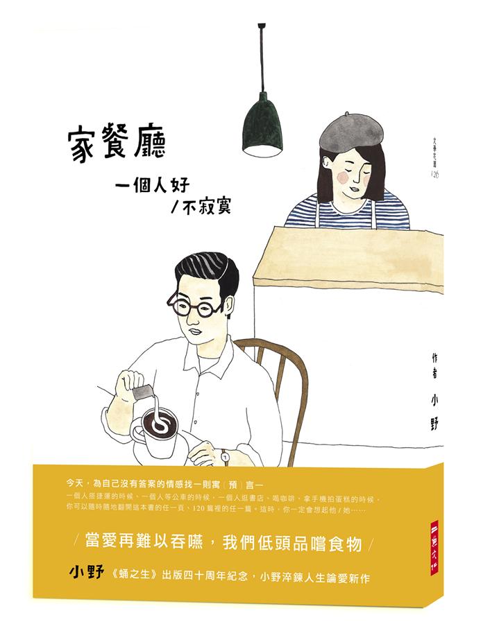 | 簡介 / | 家餐廳: 一個人好 不寂寞: 當愛再難以吞嚥,我們低頭品嘗食物 《蛹之生》出版四十周年紀念,小野淬鍊人生論愛新作今天,為自己沒有答案的情感找一則寓(預)言—一個人搭 |