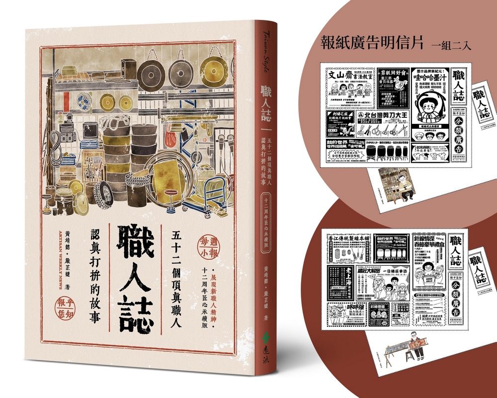 內容簡介 【限量贈送|無厘頭報紙分類廣告明信片×2】 傳達52+2人生正能量用一份小報,讓職人的精神被看到「採訪52個職人,像是聽了52個故事,得到52種不同的人生經驗。看到師傅們對職業注入這麼大的熱情,就覺得我們也都應該這樣對待自己的工作。」 職人,是指傳承守護著代代相傳的傳統技藝,並透過雙手製造出良品的生產者。這群人熱情的從事創作,以擁有嚴謹、專業、用心、負責的態度感到自豪,這就是經過時間淬煉而形成的職人態度。 兩個學設計的女孩,12年前大學畢業製作以一週一報的小報形式,深入探訪52位台灣傳統工藝職人,在可能是一生一會的相遇裡,師傅們大方分享其畢生經驗與工法技巧,而兩位好奇女孩的回饋,就是親手用文字、畫筆、攝影、排版,一一記錄描繪職人製作的場景、作品與工具,用青春的全部熱情,為這片土地留下見證,向頂真的職人們致敬。 《職人誌》2013年初版即獲得多項大獎肯定,成為年輕人認識台灣傳統工藝的入門書。今睽違12年再度全面修訂出版,補上職人的最新動態,不僅讓本書的生命得以延續,繼續報乎恁知,也讓新世代的年輕人得以看到職人魂的匠心永續,再次體驗手感時代的美好。 當年憑著憨膽、拖著行囊、揹著相機全台走透透的兩位女孩,如今也延續大學時代踏查的勇氣與熱情,在創作領域中發光發熱,展現新世代職人認真打拚的精神。 【本書特色】▲一週一職人,帶領讀者走入52個頂真的工藝世界▲仿舊報紙編排、創新出版視覺表現▲Q版精細工筆插圖,迎合讀圖世代需求▲無厘頭報紙分類廣告,融合新世代的幽默感 ★榮獲肯定★中國時報開卷好書獎「美好生活書」北市圖年度好書大家讀「最佳少年兒童讀物」文化部「中小學生優良課外讀物推薦」金蝶獎台灣出版設計大獎「榮譽獎」