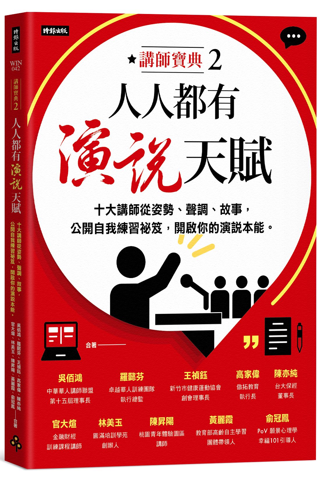 內容簡介 ★ 繼《講師寶典:成為好講師的五部曲》,「中華華人講師聯盟」續推出「講師寶典」系列★──演說自我練習‧唯一權威參考書籍──十大講師傾囊相授,全方位解析一場精采演說的成功要素,告訴你如何準備與自我訓練,一開口就征服全場!在台上說得口沫橫飛,台下睡成一片?如何漂亮開場、結束時又能讓人印象深刻?究竟該如何準備、如何說,才能獲得滿堂彩?一場場精采的演說都是透過練習、練習、再練習而成,姿勢、聲音、故事;開場、結束、互動與回饋,每個環節只要用對技巧,每個人的演說天賦都可以被開啟!匯集十位超級講師深厚的功力,透過系統化的指導,幫助講師從定位、表達、教學方法、情緒管理到持續成長,全面提升教學能力。無論是日常分享、升學推甄、公司面試、新手講師還是有經驗的教育工作者,都能從中獲得寶貴的啟示與實用的技巧。 ──吳佰鴻 (中華華人講師聯盟 第十五屆理事長)──講師寶典2 十祕笈打開你的演說力──吳佰鴻|成為好講師羅懿芬|從回饋到成長:講師與評審改變他人的力量王禎鈺|樂齡優良教師成功演說祕訣高家偉|其實你和你想的不一樣:上台演講與表達力陳亦純|名言名句,創造吸睛演說的十個案例官大煊|故事若能說得好,天下何人不識君林美玉|深入人心的演說與表達技巧陳昇陽|動靜皆宜的引導技巧黃麗霞|驚喜與實用的文字情境創作力俞冠鳳|舞台魅力:舞台上的吸心大法、舞台下的易筋經