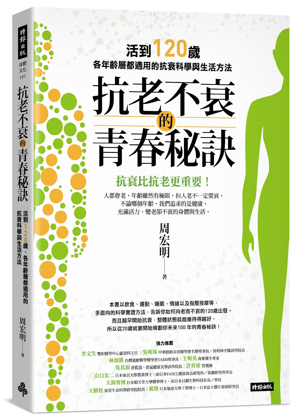| 商品描述 | 抗老不衰的青春秘訣: 活到120歲, 各年齡層都適用的抗衰科學與生活方法:抗衰比抗老更重要!人都會老、年齡雖然有極限,但人老不一定要衰,不論哪個年齡,我們追求的是健康 |