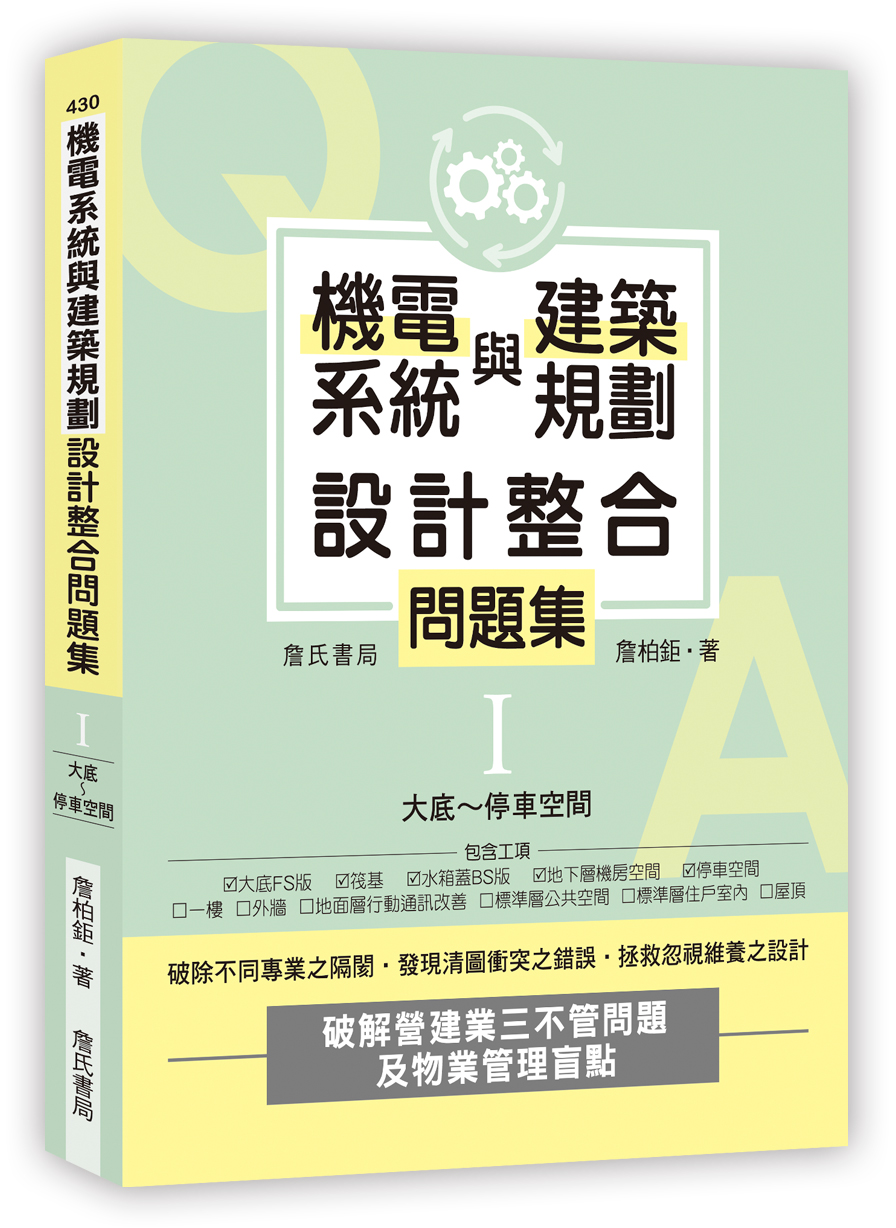 內容簡介 |破除不同專業之隔閡||發現清圖衝突之錯誤||拯救忽視維養之設計|破解營建業三不管問題及物業管理盲點,機電與建築的界面整合難點,解法都在這裡!◆務實觀點.案例選題以業界實案作為選題背景,現行技術及優化工法、過往經驗值及設計趨勢皆以科學化、數據化呈現,100%貼近實務所需。◆秉持高通用性原則以合於法規為前提,建立通用性高的設計原則,無論用 於內部檢討或跨部門溝通皆 有所本,各種建築類型的機電設計內容皆能取法。◆提供基礎設計方法以閲歷無數的資深電機技師觀點,為機電設計相關從業者架構出底層工作之邏輯,搭配能解決實際問題的參考工具,直入設計核心。◆深入附委託協作模式第—手分享營建業從業人員的協作分工樣態,多方融合 附委託設計單位、建設業方 、營造廠、設備供應商、施工廠商之專業本位觀點。◆依工序系統化學習單元依照建築工序推進,由下而上(大底至屋頂),由外而內(外牆至室內),由公設至住戶,循序漸進,逐一解析機電系統界面問題。■ 本冊包含工項◆大底FS版◆筏基◆水箱蓋BS版◆地下層機房空間─噴灌機房&雨水回收機房─消防機房─發電機室─電信機房─台電配電場所─蓄水池機房─垃圾儲藏室─防災中心◆停車空間(複式牆)■ 適用對象本書「建築與機電界面」相關議題涉及之專業人員包括:◆建設業方、營造廠、設備供應商、施工廠商。◆附委託設計單位,如機電技師、建築師、結構技師、燈光設計師、景觀設計師、室內設計師、綠建築顧問、代銷業者、物管業者……等。