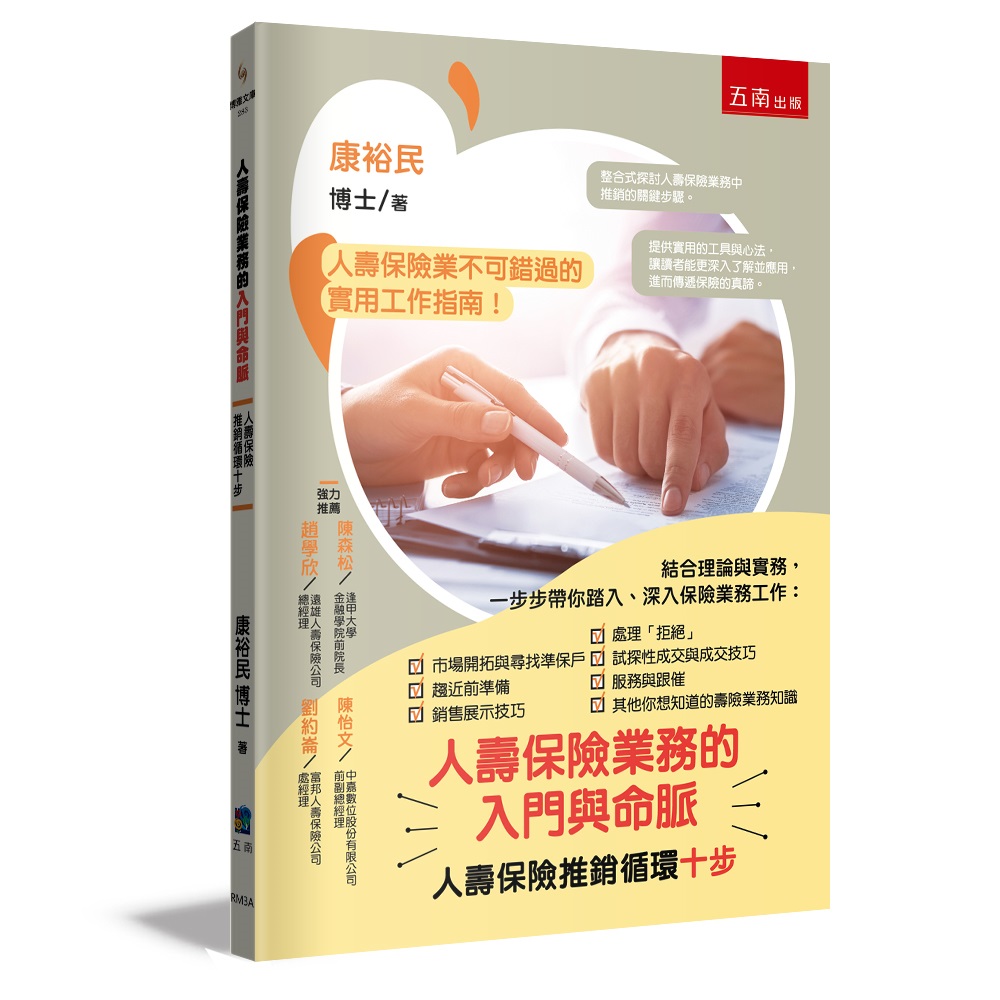 推薦序 : 康教授這一本壽險行銷的書,已經規畫很久很久了,在職時他忙於教學與研究工作,課暇之餘,還遊走各大壽險公司擔任行銷訓練講師,根本分身乏術,所以我就一直稱這本書為「傳說中的行銷祕笈」。