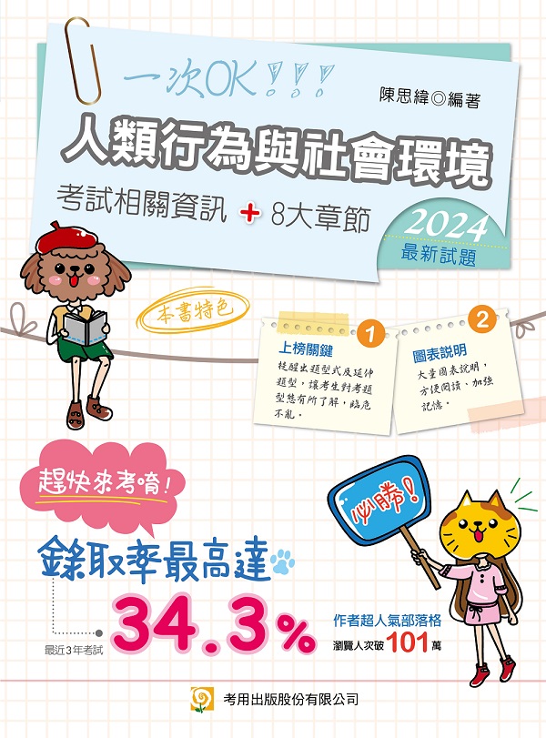 | 商品描述 | 人類行為與社會環境 (第8版):本書特色1上榜關鍵提醒出題型式及延伸題型,讓考生對考題型態有所了解,臨危不亂。2圖表說明大量圖表說明,方便閱讀、加強記憶。讀書方法+精 |
