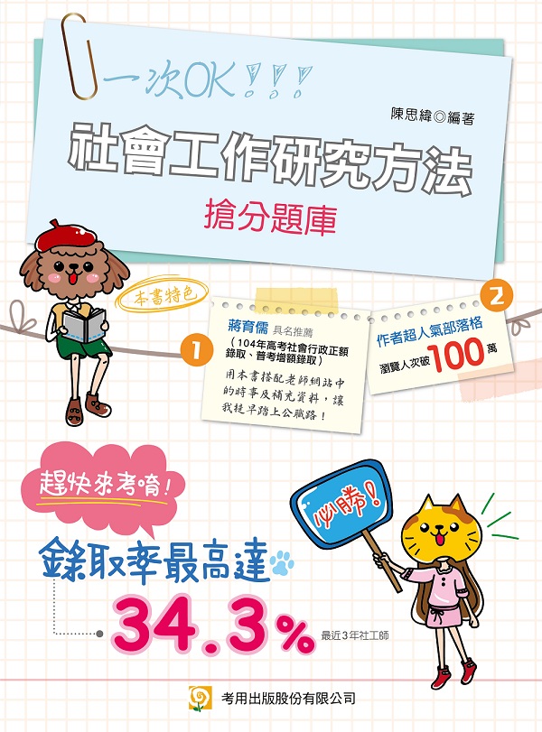 商品描述 | 社會工作研究方法搶分題庫 (第8版):蔣育儒推薦(104年高考社會行政正額錄取、普考增額錄取)用本書搭配老師網站中的時事及補充資料,讓我提早踏上公職路!作者超人氣部落 |
