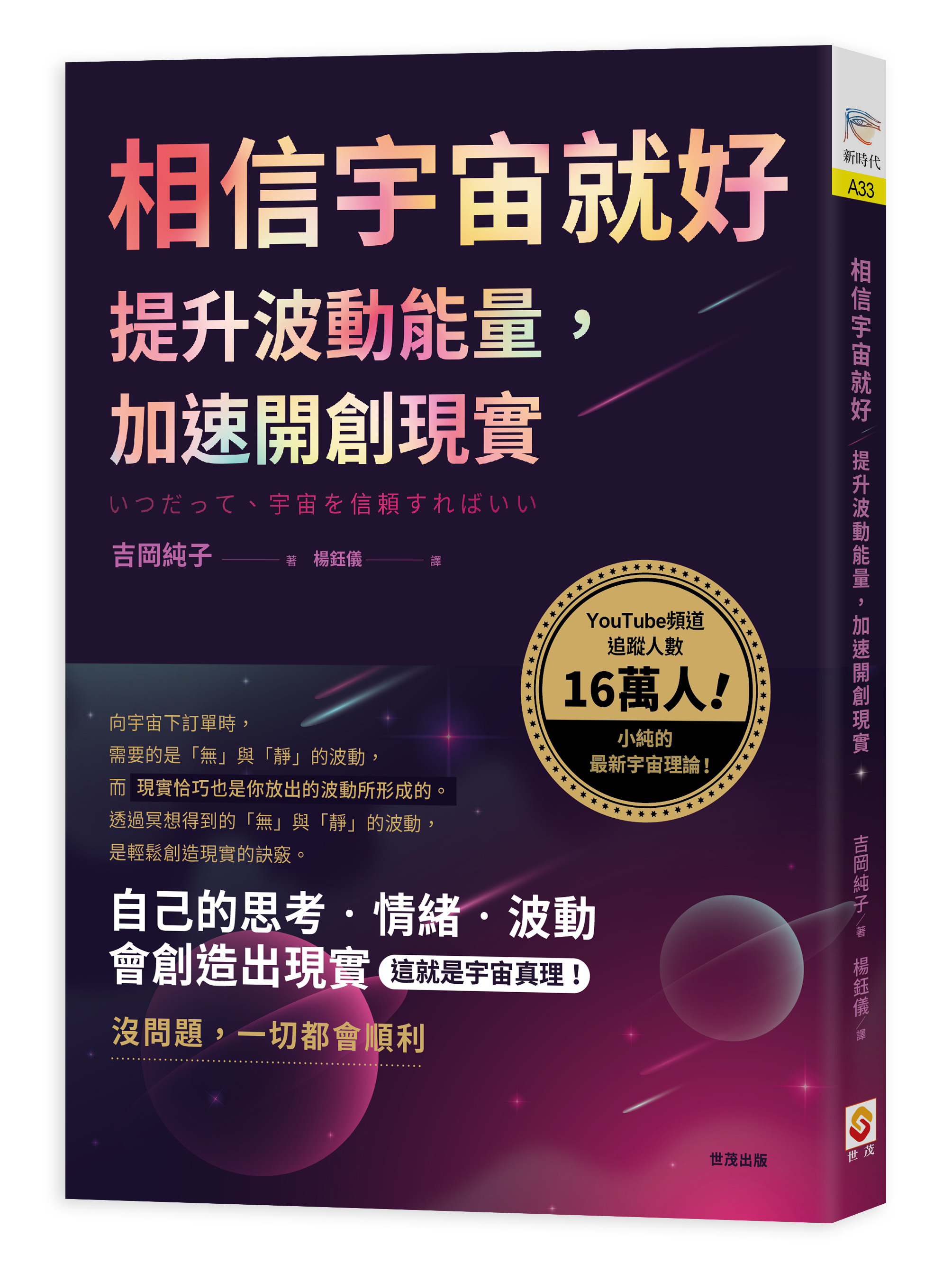 作者介紹 吉岡純子 小學三年級時,曾遭受到陌生男性的性虐待,之後歷經過進食障礙、憂鬱症。20歲前後不斷進出精神科。而且在25歲左右遭遇到了被車輛拖行45公尺的交通事故。幾年後,心臟病發病,被醫師宣告「只剩1個星期的壽命」,但奇蹟似地活了下來,之後的幾年間一直過著尼特族的生活。 我對這樣持續著這樣不幸的人生,感到厭煩,在「就是想獲得幸福」的想法下,學習了宇宙理論、吸引力法則、心理學、量子力學、靈性、醫學等等,考取了各種資格、進行各種研究。因此決心進行個人創業,並持續至今。 創業第一年度,獲得的成果是年營業額為3000萬日圓,以順利展開的模式開始了我的創業人生。隔年,年營業額破億,現在的年營業額‧年收入也是持續增長,在令和的第一天與心愛的男性結婚,現在每天都過著幸福的日子。 為了將「不論是讓你感受到多麼不幸的人生及現實,每天都能以現實創造論為基礎,不斷創新改造」這件事告訴和從前自己一樣,覺得很痛苦的人,現在以YouTube為主,發布關於自己實踐過有獲得成果的「現實創造論」影片,同時也展開各種商業活動。 著作有『ご縁がつながり運がひらける日本の神さま大全』(暫譯:結緣開運日本神祇大全)『日本人こそ、宇宙にお願いすれぱいい。』(暫譯:正因為是日本人才只要向宇宙許願就好。全都由フォレスト出版)、「宇宙パワーで銀河一のパートナーと世界一ハッビーになる!』(暫譯,利用宇宙力量和銀河第一的搭檔成為世界上最快樂的人。和大和出版)等。此外,也監修甚受歡迎的DVD教材『引き寄せの源流 エイブラハムの教え2』(暫譯:吸引的源流 亞伯拉罕的教喻2。講師伊絲特‧希克斯╱フォレスト出版)。 (YouTube頻道) 【魔法使いの学校】吉岡純子 https: www.youtube.com channel UCGX0i593ciGvM-6hY3yg0Dg featured 楊鈺儀 念中文的日文譯者。喜歡文字,喜歡旅遊,期望過上晴耕雨讀的好日子。譯有《高頻療癒:淨化內在能量,實現豐盛人生》《改變潛意識,成就美好現實:用量子力學實現願望的11個法則》(世茂出版)等書。 [email protected]