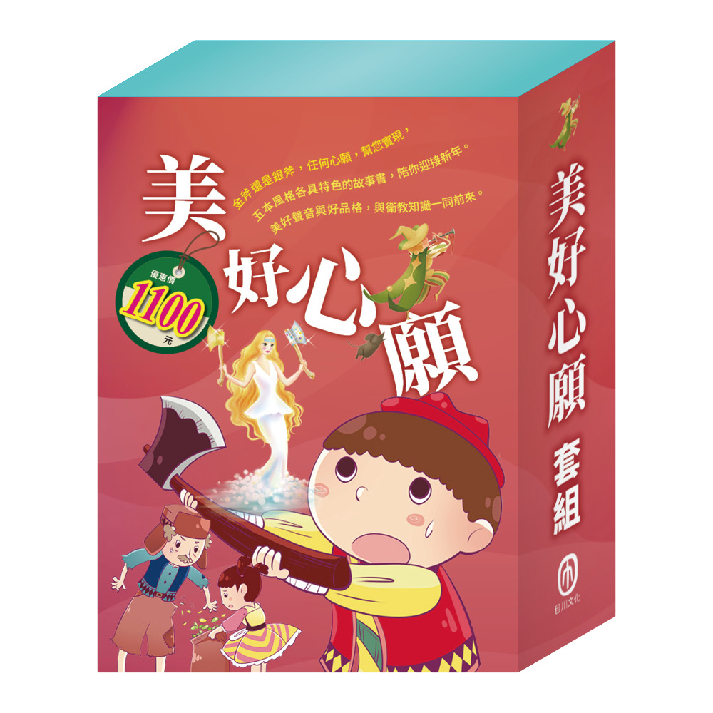 內容簡介 美好心願 套組金斧還是銀斧,任何心願,幫您實現,五本風格各具特色的故事書,陪你迎接新年。美好聲音與好品格,與衛教知識一同前來。【衛教小尖兵】+【樂樂貝貝的異想世界】+【晚安故事】三系列聯手,給你帶來絕佳閱讀體驗■小尖兵出動!腸病毒STOP!精采生動的圖畫故事,蘊含預防腸病毒的衛教知識,養成孩子的衛生好習慣!■孩子們走吧!闖入異想世界!嚴選經典童話故事,在維持原有故事架構下,設計一對小兄妹樂樂和貝貝,穿越時空進入故事,和故事裡的人物一起探險,讀繪本,聽故事,說說看,想一想,動手玩。■與好音樂一同陪你入眠用音樂啟動好腦力 -- 搭配古典音樂豐富的旋律,快慢有序的節奏,刺激聽覺神經生長與發育。音樂故事劇場身歷其境的感受,滿足幼兒的全腦發展刺激,是陪伴孩子的最佳床邊音樂故事!《衛教小尖兵:腸病毒拉警報》 今天是點點生日,好朋友們都前來祝賀。沒想到腸病毒偷偷跟來,想要趁機進攻點點的家。就在特攻隊三人被包圍的緊要關頭,意想不到的神祕救星登場了!讓我們加入拯救特攻隊的行列,一起培養孩子成為擊敗腸病毒的衛教小尖兵! 《樂樂貝貝的異想世界:國王的金手指》 〖核心品格:知足〗 〜貪得無厭,自食惡果〜 國王救了巫師,得到了「金手指」魔法,所有被國王碰到的東西,通通都會變成黃金!樂樂和貝貝看著國王不停變出黃金,也覺得好神奇、好開心。但是,大家也漸漸發現,所有的東西都變成黃金,好像也不是好事情…… 《樂樂貝貝的異想世界:樵夫的願望》 〖核心品格:知足〗 〜得所應得,不貪不求〜 窮樵夫救了樹精靈,得到了三個願望,這下可以發財啦!許什麼願望才好呢?要很多錢,很大的房子,還是吃不完的點心? 不過,他不太想把願望的事情告訴太太,還要樂樂、貝貝幫他保密,但是,他卻忘了一件比保密更重要的事情…… 《晚安故事:金斧與銀斧》 ☆核心品格:〖誠實〗 ☆搭配樂曲:布拉姆斯〈第一號小夜曲〉 樵夫阿金的斧頭不小心掉到「仙女湖」裡了! 因為他不受利誘的誠實品格,讓仙女不僅幫他把斧頭撿了回來,還送給他兩把珍貴的金斧頭和銀斧頭作為獎勵。 另一個樵夫阿銀在旁邊偷看到了這一幕,也好想拿到那兩把珍貴的斧頭…… 《晚安故事:花衣魔笛手》 ☆核心品格:〖環境整潔,人人有責〗 ☆搭配樂曲:韋瓦第〈四季:冬〉 哈梅爾鎮的居民總是亂丟垃圾,導致環境髒亂,老鼠滿街亂竄,卻只會互相指責。幸好一位神秘的吹笛人,將老鼠全部帶走了!可是沒有人懂得感恩,也沒有改變壞習慣,所以吹笛人氣得帶走了鎮上所有的小孩…… 等等,好像有兩個孩子沒有被帶走,他們有辦法幫居民把其他小孩救回來嗎?