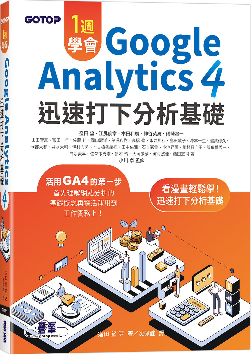 內容簡介 「怎麼辦?對Google分析一竅不通,好焦慮!!」 趕快打開這個為期7天的學習計劃 每天都從有趣的漫畫開始 按部就班享受有趣且高效的GA4學習過程 「OMG!Google Analytics又改版,該不會要打掉重練吧......」 別擔心,我們會教你如何併用和遷移到GA4 曾經的努力會一直都在的^^ 「我不是不會,只是"稍微"忘記一點點」 需要回想哪個部分,就從哪個部分開始就好 32位撰稿人據自己的專長進行撰寫與發揮 精心安排的高效學習曲線 每章最後的QA練習讓你立刻加深印象 再也不怕轉頭就忘! Google Analytics或網站分析的專業書籍,但總感覺有點難度。為了應對這類困擾,本書從「基本中的基本」開始說明相關基礎知識,為讀者提供全方位協助。 本書規劃以一日一個主題的方式,一週就能讓您理解Google Analytics 4的運作和操作方法,並且掌握製作簡單報表的能力。 全面認識Google Analytics 4的工作原理、操作及分析方法 踏入網站分析實務之前, 先確實提升基礎能力吧!