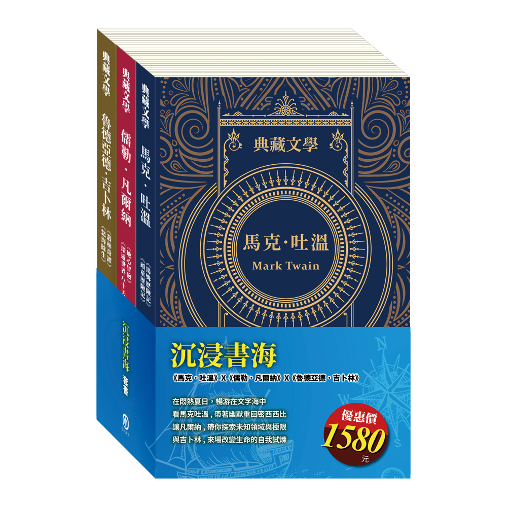 內容簡介 沉浸書海 套書 在悶熱的夏日午後,你是否曾想跳下文字海中,暢游其中 讓我們與馬克吐溫一起帶著幽默重回密西西比 看看吉卜林如何改變生命的自我試煉 還有凡爾納帶你探索未知領域與極限 三本精裝好書,看看文學大師的六則故事 燙金文字精裝本,輕巧小書帶著走, 搭配親子共讀學習單,閱讀隨身帶著走。 馬克.吐溫Mark Twain:湯姆歷險記&頑童歷險記 《湯姆歷險記》 湯姆是最調皮又有魅力的男孩。 被罰刷牆能讓其他孩子心甘情願為他工作。 辛苦背誦才能得到的聖經,他不費吹灰之力就拿到手。 策劃了一場與朋友們的葬禮,惹得家人傷心難過。 調皮搗蛋的他卻也會在關鍵時刻挺身而出,化解冤獄伸張正義! 且看湯姆跌宕起伏的日常生活,他是如何從大家眼中的頑皮孩子,成為眾人欽佩的小英雄呢? 《頑童歷險記》 不愛受家庭與規矩束縛的孤兒哈克與想要找回自由回歸故鄉的黑人朋友吉姆。 沿著密西西比河順流而下,偶遇自稱「國王」與「公爵」的兩個大騙子。 接踵而至的麻煩、道德與倫理的掙扎、朋友遭綁被賣的困境。 哈克該如何解決這一系列的麻煩?湯姆的加入又會為帶來什麼轉機? 吉姆最後能順利回到故鄉嗎? 儒勒.凡爾納Jules Gabriel Verne:地心冒險&環遊世界八十天 《地心冒險》 德國地質教授李登布洛克意外得到記載盧恩文密碼的古書,侄子阿賽克將其內容破解出來,發現能震驚全球的巨大事件:有人去過地心,並且平安回來! 地心內到底有什麼?強烈的好奇心與求知的探索慾望,促使叔侄二人前往線索指引的冰島,並結識了聰慧勇猛的嚮導漢斯。 冰島群山陡峭的兇險、火山口內錯綜複雜的地道、水源匱乏的瀕死感、三人走散的恐慌、地底大海的壯闊、兇猛廝殺的海獸之爭……這趟旅程到底會帶來多少驚喜和刺激? 他們能順利抵達地心嗎?沿途會遇到多少棘手的困境?三人又該如何平安回到地面? 《環球世界八十天》 英國紳士福克先生是個循規蹈矩的人,他對時間的掌控如同鐘錶般準確。 但這次的福克先生不一樣,他在俱樂部賭上所有財產,賭約是自己可以在八十天內環遊世界一周! 沒有飛機的十九世紀,福克先生只能依靠他精準掌握時間的優勢,將沿途的路程安排妥當,火車、輪船、引水船,甚至是大象!各種交通工具輪番上場。 旅途中也不是事事稱心如意,海上暴風雨、勇闖殉葬儀式拯救夫人、印度僧侶的法庭控告、美國印地安人搶劫火車、僕人路路通的神祕失蹤……福克先生最後能否化險為夷,成功橫跨歐非亞美四大洲?又或是超過八十天期限,痛失全部家產,遺憾失敗? 魯德亞德.吉卜林 Rudyard Kipling:叢林奇譚&怒海餘生 《叢林奇譚》 男孩毛克利被狼群扶養長大,狼群是他的父母兄弟,熊和黑豹是他的老師,蟒蛇是他忠實的朋友,他在野獸們的教導與守護下長大,學會各項技能與叢林的法則。毛克利與他的叢林夥伴們,一起逃脫猴民的挾持、手刃邪惡老虎希爾汗、智取擊退豺狼大軍……叢林生活精彩又刺激。 直到有天他走出森林,進入人類社會,他找到母親,感受到母親的愛,但被野獸扶養長大的他,在人類眼中宛如異類,不被居民們接納。但身為人類的他,仍渴望著人類母親的愛,面對來自同族的惡意,毛克利該如何應對?他又如何在叢林之王和人類身分做出取捨? 《怒海餘生》 驕縱任性的貴公子哈維在搭乘豪華郵輪的途中,因為自己的任性與大意而意外落水。當他再次醒來時,是躺在充滿魚腥味的漁船「在那兒號」上,這一跌,讓他的生活從紙醉金迷掉到了波瀾壯闊的陌生世界中。 急於回家卻無法證實身分的哈維,沒有高貴的身分和金錢的倚仗,只能待在過去鄙夷過的漁船上生活,與漁民們同吃同住,並為了每月十元美金的酬勞,在船上打掃、捕魚。這段奇遇與天翻地覆的生活體驗會帶給哈維怎樣的影響?他又如何從驕縱任性的男孩,蛻變成堅強可靠的領導者?