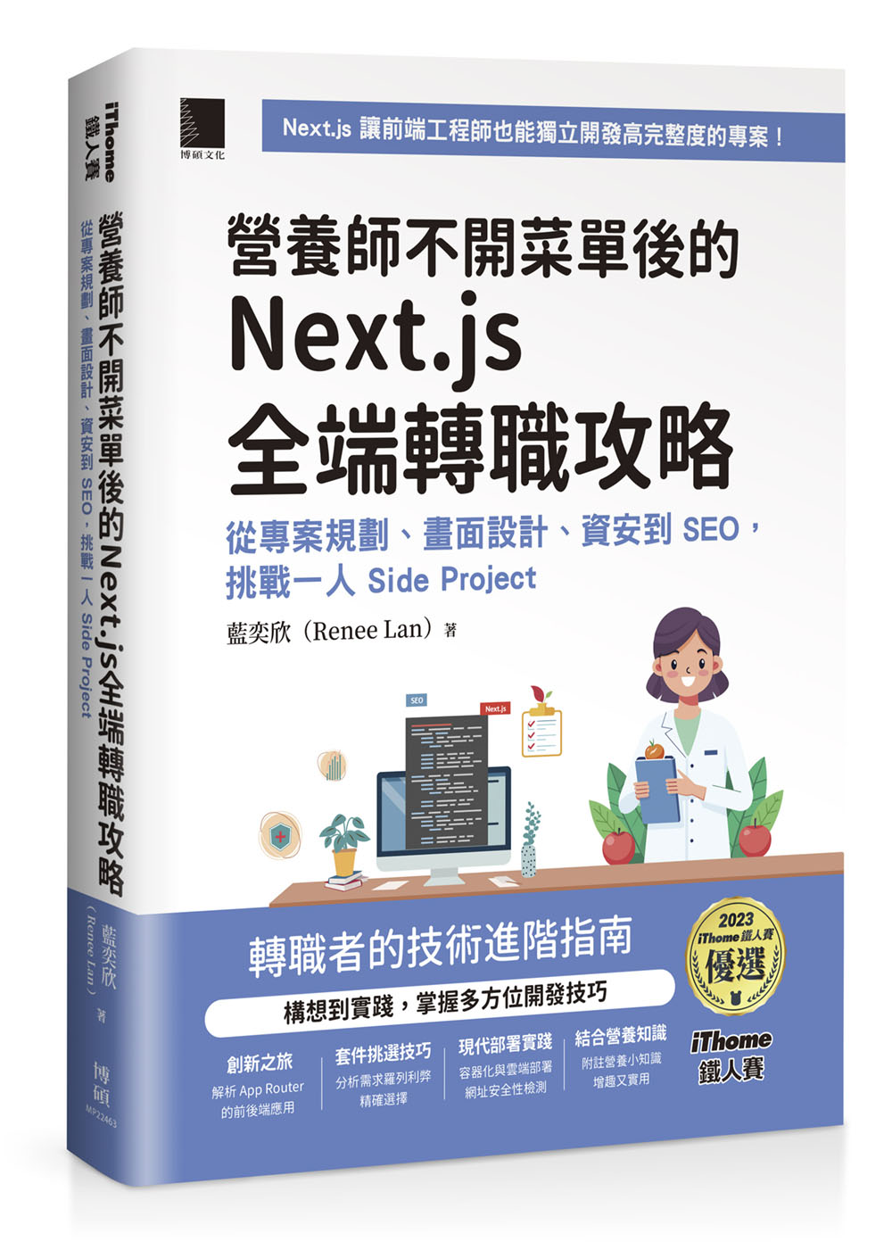商品描述 | 營養師不開菜單後的Next.js全端轉職攻略: 從專案規劃、畫面設計、資安到SEO, 挑戰一人Side Project:打造零到一的SideProject,扭轉前端開發職涯的偉大航道Next.js讓前端工 |