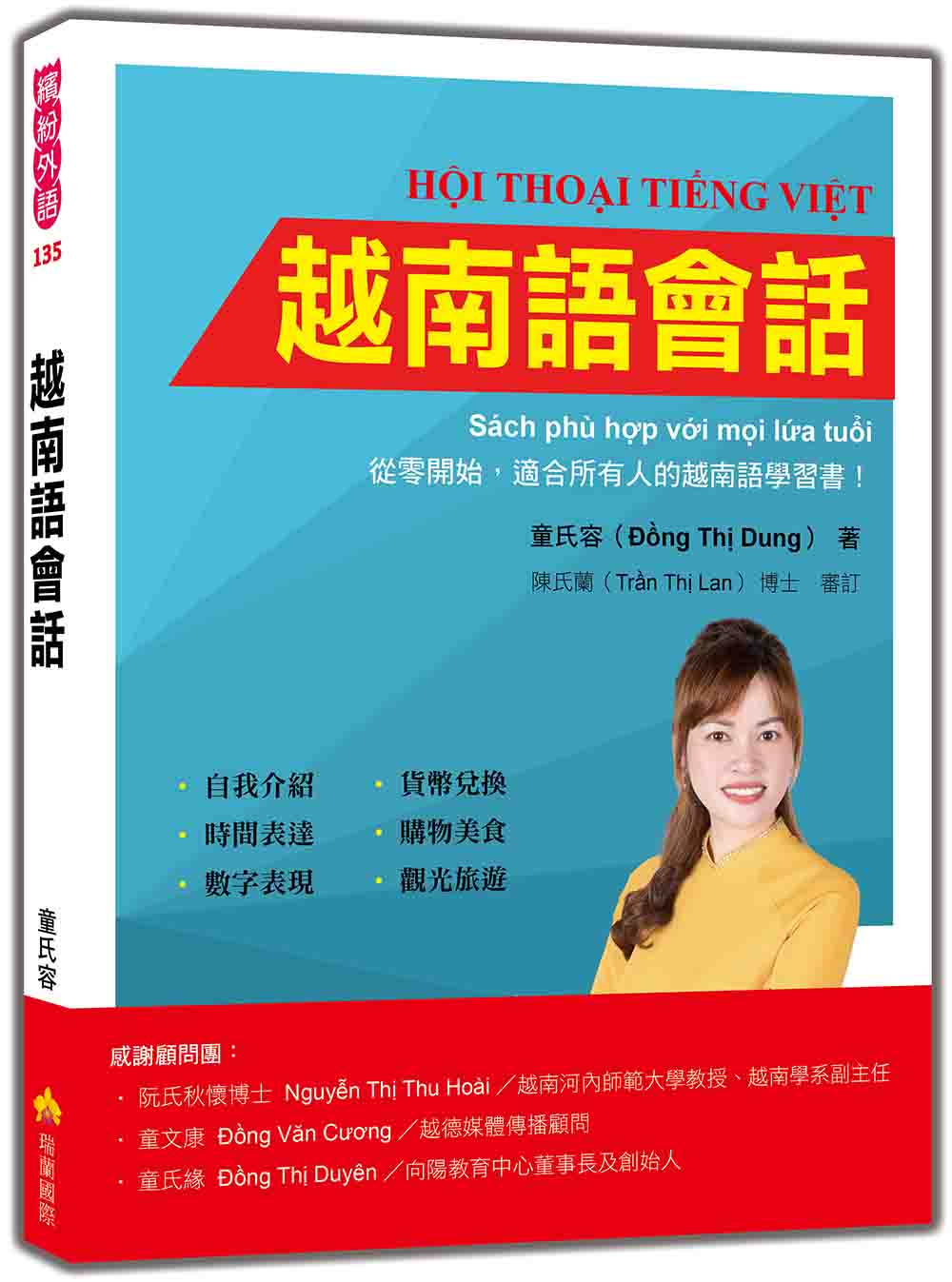 作者介紹 童氏容(ĐỒNG THỊ DUNG) 學歷: 台灣首府大學教育研究所畢業 南榮科技大學企業管理系畢業 南榮科技大學觀光系畢業(專科) 現職: 國民及學前教育署新住民語文教學支援人員培訓講師 臺南市政府性別平等及婦女權益促進委員會委員 臺南市家庭教育中心諮詢委員 社團法人台南市牧德關懷協會理事長 內政部移民署通譯 新營社區大學越南語講師 經歷: 臺南市勞工局就業歧視評議委員會委員 北門社區大學越語講師 曾文社區大學越語講師 獲內政部移民署「新住民及其子女海外培力計畫」補助 獲內政部移民署「新住民子女培力與獎助學金計畫」補助 新東國小繪本《桃花心木媽媽》越南語翻譯 專業證照: 越南國際越語教師培訓結業 越南河內社會科技人文大學越語教師培訓結業 國民及學前教育署新住民母語教學人才培訓結業