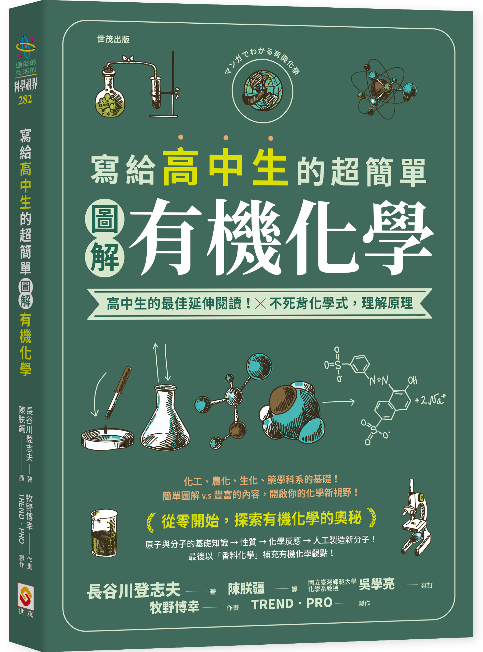 內容簡介 高中生的最佳延伸閱讀! 不死背化學式,理解原理 化工、農化、生化、藥學科系的基礎! 簡單圖解V.S豐富的內容,開啟你的化學新視野! 化學課本讀不懂?反應式看不懂?這本圖解書用最簡單的方式,告訴你有機化學的奧秘,帶你輕鬆踏上科學探險之旅! 從零開始,探索有機化學的奧秘——原子與分子的基礎知識→性質→化學反應→人工製造新分子! 最後以「香料化學」補充有機化學觀點! 直觀圖解、深入淺出,跟著漫畫,一步步深入有機化學! 以圖表與解釋並重,幫助讀者快速掌握如立體結構、官能基性質等重要知識點 學習不再是死記硬背,而是理解與探索。無論你是為了應付考試,還是對科學充滿好奇,這本書都將成為你的最佳入門夥伴! 有機化學探討有機化合物,而有機化合物主要是由碳、氫、氧、氮四種元素構成 構成元素的種類雖然很少,但是通過複雜的多重結合,可以形成多用性且數量不限的化合物 生物的重要構成物質、營養物質、藥等也大多是有機化合物 學習有機化學的時候,必須記住的名稱、構造等非常多,對於初學者來說,是門很難掌握的學問 而要學習這門學問不能死背化學反應式,因為這是門研究原子、分子性質的科學而非只著重於記憶力 本書通過漫畫和通俗易懂的解說,簡單易懂地介紹了有機化學的精華。 對學習有機化學的初學者來說很好掌握,是非常適用的一本書。 本書是一把打開有機化學大門的鑰匙,專為對有機化學感興趣的高中生量身打造。 作者以簡單明瞭的圖解方式,將有機化學的基礎知識化繁為簡,讓讀者能輕鬆掌握核心概念,從碳原子的結構到複雜的分子反應,一步步深入探究。 原子結構、軌域與電子分布是什麼? 有機化合物的性質來自哪裡? 分子的立體結構會改變物質的氣味? 竟然有肉眼可見的巨分子? 有香氣的物質多為脂溶性? 掌握碳原子的魔法鍵結、了解分子的立體結構,從此化學成績飛躍式成長,成為同學眼中的學霸! 最全面、有趣的有機化學入門書《寫給高中生的超簡單圖解有機化學》,詳盡又易懂的內容,讓你再也不怕化學式! 國立臺灣師範大學化學系教授 吳學亮 ◎審訂 *本書原名為《世界第一簡單有機化學》,現更名為此。