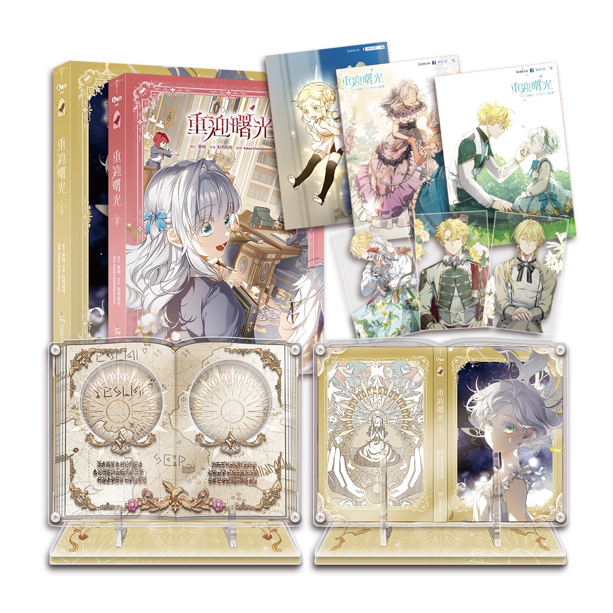 內容簡介 ★隨書好禮大方送: 第三集隨書贈送「精靈王的召喚」精美留言卡 第四集隨書贈送「母女情深」全新繪圖留言卡 ★ 預購限量好禮: 「艾莎,這位紳士是誰?」PVC透卡 尺寸:5.4x8.5cm PVC透卡一組三款,限量珍藏。 (數量有限,送完為止) 重迎曙光3-4【B款-徽章展示架】╱全彩漫畫3-4集、明信片B組(1包3張)、書本造型的𢕲章展示架(可放2個58mm徽章、附專屬底座)、預購贈品「艾莎,這位紳士是誰?」PVC透卡(1組3款) 備註: 1. 預購贈品數量有限,送完為止,預購結束後所出貨的商品就不再附贈 2. 商品示意圖僅供參考,實際印刷顏色及效果請以實品為準,謝謝 3. 贈品盒等外包裝為保護之用,若因運送產生些微碰撞、壓痕等狀況皆屬正常現象,恕無法退換 = 商品簡介 = 1. 壓克力徽章展示架 尺寸:外框140x187mm╱前板2mm╱中間9mm╱後板2mm╱底座187mm x 60mm╱內圈直徑60mm,可放2個58mm的徽章╱上層單面圖、下層雙面不同圖 ──請皇女殿下記得,妳的身旁,有一群在妳疲憊時會向妳伸出手的人 書本造型的徽章展示架,不借重金少量訂製,限量珍藏! 翻開書本即可呈現大陸地圖,14歲的艾莎展開了生平第一次的旅行,她不知道的是,此行會遇到意想不到的人,命運的邂逅即將展開。 書本封面即為漫畫第四集封圖,與紙本書相呼應。 展示架需自行組裝,可搭配其他特裝組,任意置換所收藏的徽章,附專屬底座,不論正面看或背面看都是精美展示架,書迷必收~ 注意事項: 1.保護膜請自行撕除。壓克力表面可能存在細小劃痕,此情況不在售後範圍內 2.四個角的螺絲為活動式,需自行組裝 3.配件請妥善保存,遺失恕不補發 2. 明信片B組 尺寸:10.5x15cm 明信片1組3款,共4組12款,快來收集 = 內容簡介 = (文案待補) =延伸閱讀= 愛生活◆愛閱讀◆愛創作 更多精采活動與新書訊息請關注: 愛呦文創粉絲團:https: www.facebook.com iyao.book