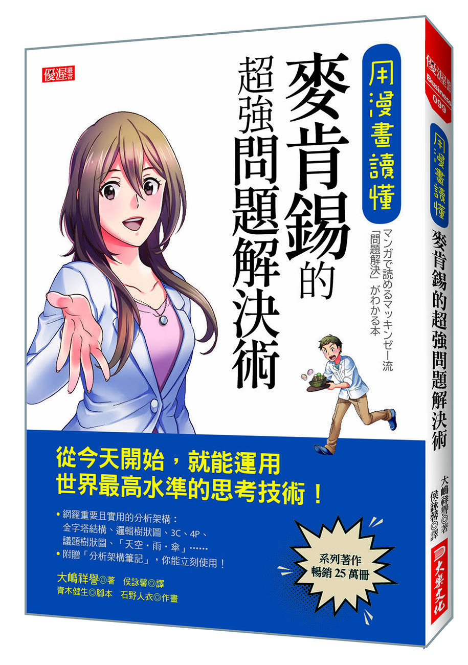 相信不少人都聽過麥肯錫,該公司是世界頂尖的管理諮詢顧問公司,從麥肯錫出來的每個人,在世界各地的企業裡都很活躍。為什麼他們無論到哪裡都能做出好成績?原因之一就是本書漫畫人物小譽提到的,因為他們懂得解決問題的方法。