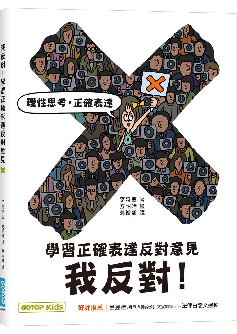 | 商品描述 | 我反對! 學習正確表達反對意見:★好評推薦★呂昱達|丹尼老師的公民教室創辦人多虧伽利略勇敢反對「天動說」,人類才能踏上前往太空的道路。多虧勇敢的女性喊出:「我反對 |