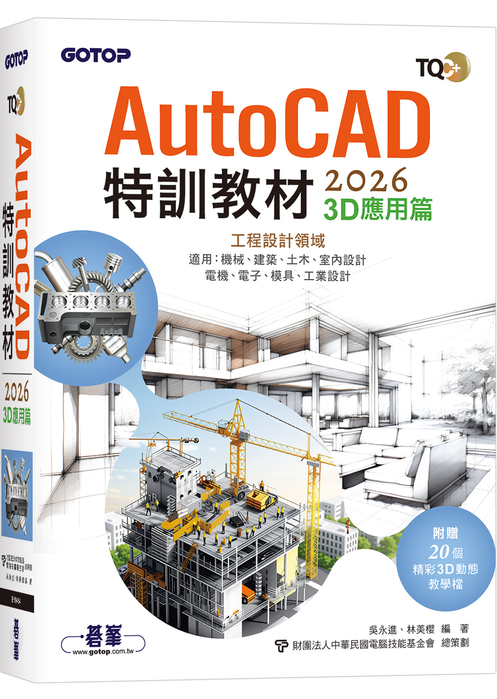 我們誠摯地感謝吳永進和林美櫻二位作者,以其多年的教學與實務經驗,並在電腦技能基金會的策劃下,為讀者編寫這本「TQC+ AutoCAD 2026特訓教材-3D應用篇」,相信這本書可以成為CAD學習者的最佳選擇,誠如作者所說:「用心學習AutoCAD 2026期許新手快速成為CAD專業工程師,期許AutoCAD 2008~2024、2025老手如虎添翼,功力更上一層樓。」