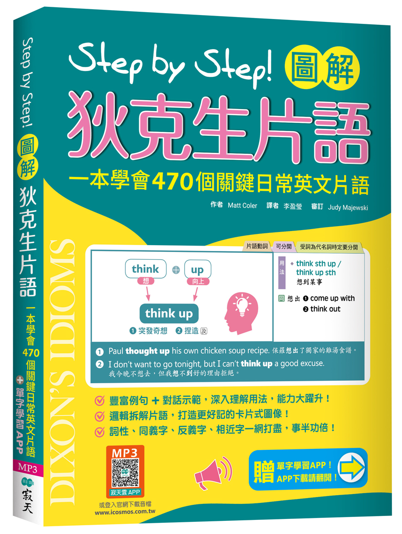 | 書名 / | Step by Step! 圖解狄克生片語: 一本學會470個關鍵日常英文片語 (附寂天雲隨身聽APP) |