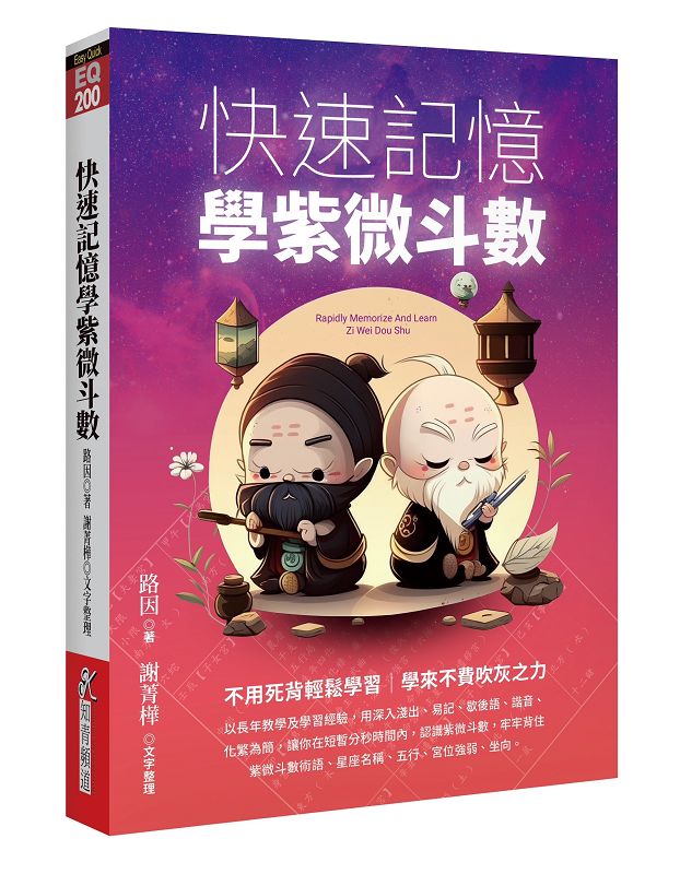 內容簡介 不用死背輕鬆學習 學來不費吹灰之力 以長年教學及學習經驗,用深入淺出、易記、歇後語、諧音、化繁為簡,讓你在短暫分秒時間內,認識紫微斗數,牢牢背住紫微斗數術語、星座名稱、五行、宮位強弱、坐向。 奧地利出生,入了英國籍,是位哲學家及數理邏輯學家,路德維希.維特根斯坦(Ludwig Wittgenstein)說過: 「孤獨,貧窮都能快樂,如果能清楚自己。倘不能瞭解自己的個性,再富有朋友再多也很難快樂。」 紫微斗數是藉由每一顆星的交互運作,找出人的特質、優點、缺點、行為、才華和潛能,可知己知彼,進而改之或加勉,為自己創造出新的命與運,或和人建立好的善緣與同理心。 人的個性在生下的那一剎那,紫微斗數的命宮就已清楚呈現出你獨特的個性、特質與行為傾向了。 才華和潛能,一生的吉和兇、好和壞,在紫微斗數中皆可窺知。