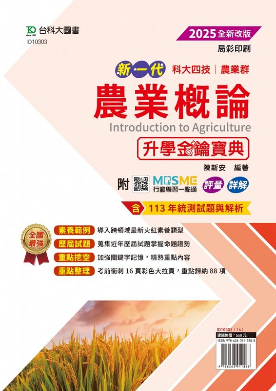 | 書名 / | 科大四技農業群農業概論升學金鑰寶典 (2025 第4版 附MOSME行動學習一點通) |