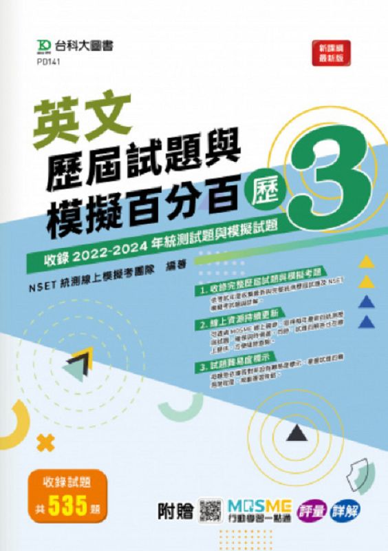 最佳賣點 : 收錄完整歷屆試題與模擬考題:依考試年度收集最新與完整統測歷屆試題及NSET模擬考試題與詳解