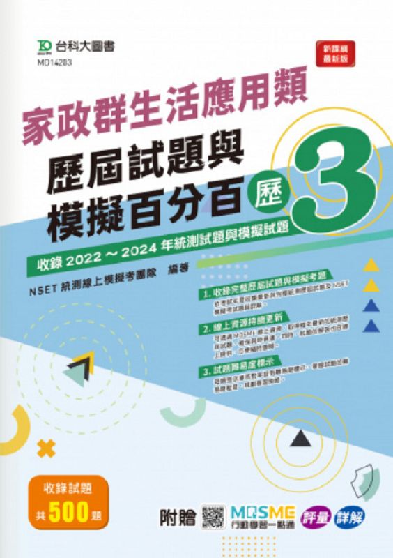 簡介 / | 家政群生活應用類歷屆試題與模擬百分百 歷3 (附MOSME行動學習一點通):★收錄試題共500題1.收錄完整歷屆試題與模擬考題依考試年度收集最新與完整統測歷屆試題與詳解。2.線 |