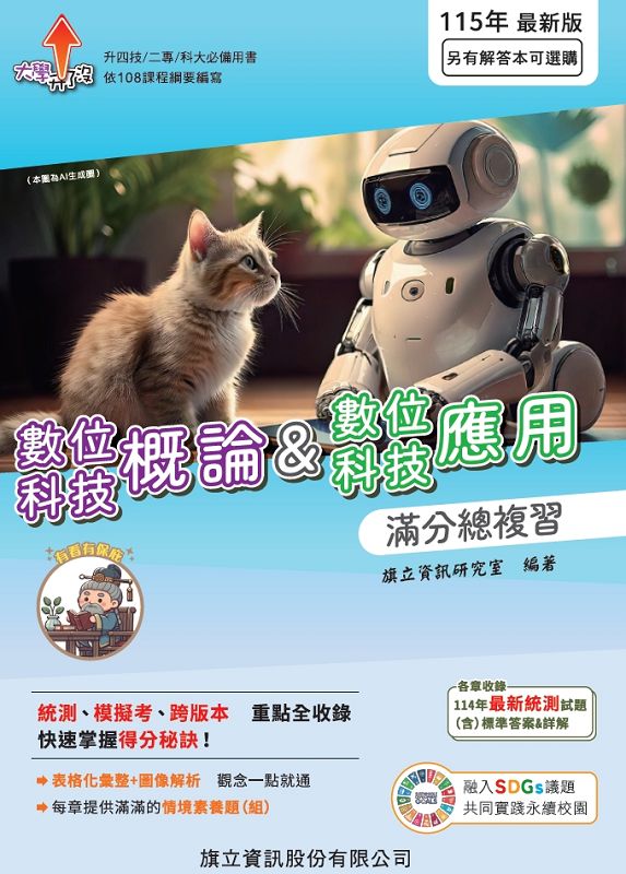 商品描述 | 數位科技概論&數位科技應用滿分總複習 (115年版):本書根據108年實施之十二年國民基本教育「商管群數位科技概論&數位科技應用課程綱要」,並融合歷年統一入學測驗、四技二 |