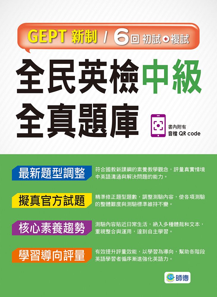 商品描述 | 全民英檢中級全真題庫: 6回模擬試題+解析 (暢銷版 附QR CODE):子母書暢銷版!全民英檢首創子母書-六回模擬試題1本+試題解析1本挑戰全民英檢滿分,初試+複試必勝聖經書籍 |