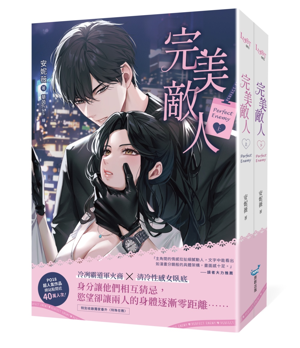 商品描述 | 完美敵人 上下 (2冊合售):\PO18超人氣作品,網站近40萬人次點閱/冷冽霸道軍火商X清冷性感女臥底身分讓他們相互猜忌,慾望卻讓兩人的身體逐漸零距離……❣收錄最完整激情 |