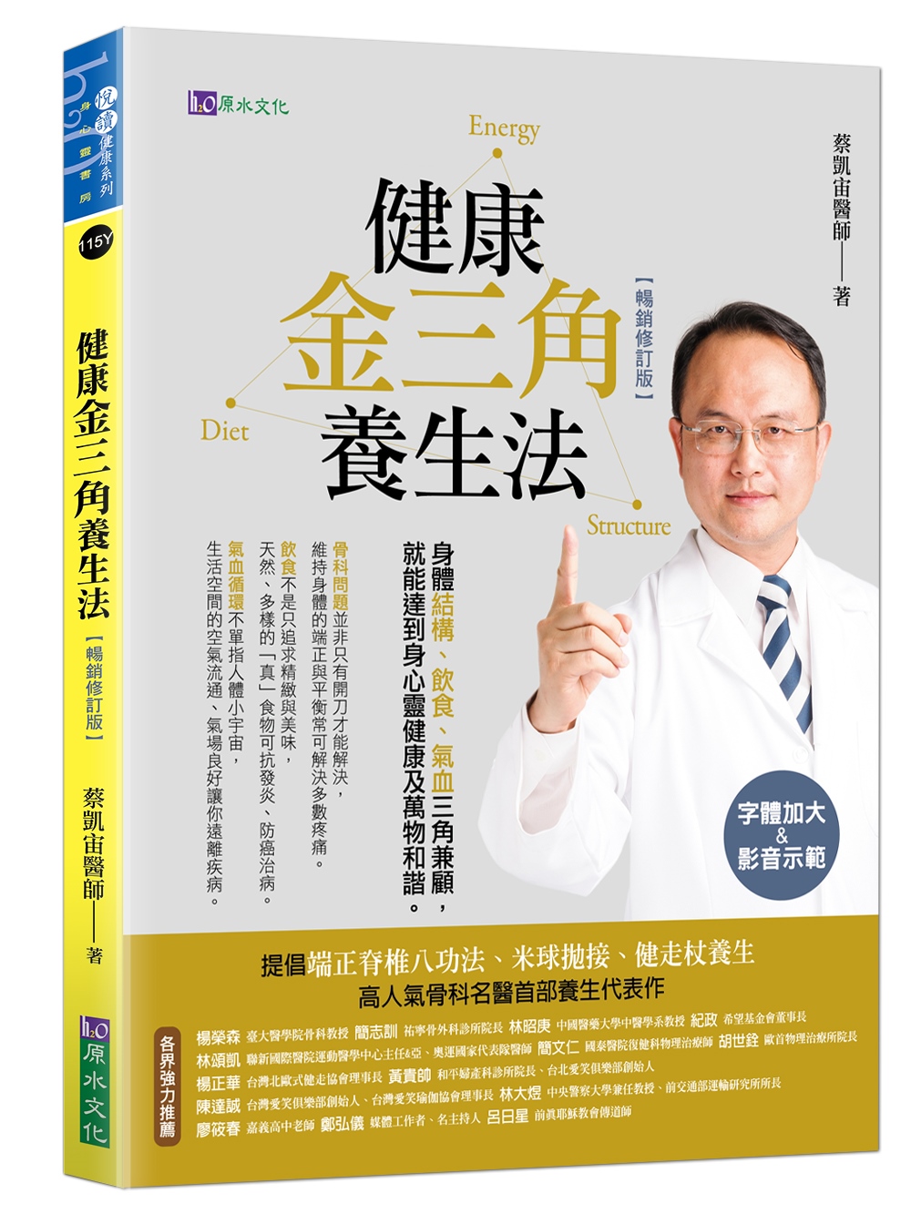 商品描述 | 健康金三角養生法 (暢銷修訂版):萬眾期待,歷久彌新!網路流傳端正脊椎八功法,提倡米球拋接、健走杖養生法,社區講座高人氣蔡凱宙醫師首部養生代表作●本書為貼心字體加 |