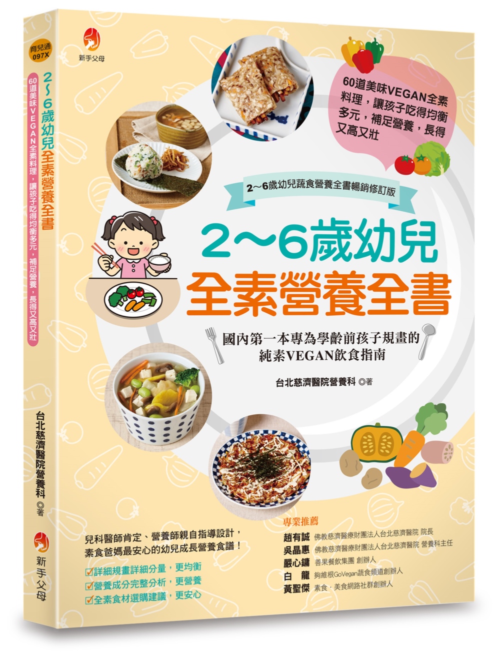 產品目錄 PART1 請教醫生:幼兒素食Q&AQ:成長中的孩童是否適合蔬食/素食呢Q:素食孩童是否容易缺乏營養?如何避免,怎麼補充?Q:全素的孩童雖在飲食中能達到營養均衡,但其生長曲線是否有低於葷食孩童的可能性?Q:吃全素的孩童,其體能及運動表現比較差?Q:剛至幼兒園的孩童,常生病,全素的孩童生病的頻率是否更高?Q:幼童食用過多的豆類製品是否會影響健康,如脹氣?Q:接觸3C 產品的年齡層已逐漸降低,該如何預防視力受損?PART 2 素食幼兒營養補充要點吃素減少接觸污染源,奠定健康基礎選「對」食物,素食寶寶也能高又壯 幼兒飲食應均衡營養、少量多餐、分次給予 全素食幼兒食量依年紀、活動量而有區別 全素食幼兒營養建議量參考全素幼兒五大類食物主要營養成分 各類食物的特性及份量 讀懂衛福部的建議表 本書的飲食建議及食譜設計量素食幼兒飲食營養補充重點 三餐應以全榖雜糧類為主食 每天攝取深色蔬菜及新鮮水果 持續攝取高鈣食物的習慣 黃豆為優質蛋白質來源 攝取優質油脂食物素食幼兒日常飲食注意事項及易缺乏營養素補充 幼兒應減少攝取甜食及高油脂食物 素食易缺乏營養的攝取方式為素食孩子選擇優質油品 脂肪酸可分為三類 依不同烹調需求選用不同料理用油優質素食食材的挑選及儲存 全榖雜糧類 豆類 蔬果類 堅果油脂類認識基因食品及基改食物 基改作物帶來的壞處常見基改食物及產品 各國基改標示說明認識有機/無毒食材 有機/無毒標章兒童專用餐具材質注意事項PART3 全素食幼兒健康食譜素食幼兒營養補給站主題1高鈣素食孩子更易缺嗎?增加鈣質吸收的因子影響鈣質吸收的因子主題2高鐵素食孩子更易缺嗎?增加鐵質吸收的因子影響鐵質吸收的因子主題3高omega-3脂肪酸素食孩子更易缺嗎?增加DHA 吸收的因子影響DHA 吸收的因子主題4保護眼睛葉黃素素食孩子更易缺嗎?增加葉黃素吸收的因子影響葉黃素吸收的因子主題5提升免疫力維生素C.E.B 群、葉酸素食孩子更易缺嗎?增加維生素C、E、B 群、葉酸吸收的因子影響維生素C、E、B 群、葉酸吸收的因子主題6強化骨質維生素D素食的孩子更易缺嗎?維生素D的來源影響維生素D吸收的因子主題7高鋅促進食慾素食孩子更易缺嗎?增加鋅吸收的因子主題8把不愛吃的食材變好吃主題9營養點心上菜囉!主題1高鈣食譜1.陽光咖哩食譜2.蔬菜多多大阪燒食譜3.香濃菇菇麵食譜4.花生香豆彩蔬青醬麵食譜5.烏金蕎麥麵主題2高鐵食譜1.雙色捲捲飯/蘿蔔味噌湯食譜2.迷迭香鷹嘴豆佐飯食譜3.番茄米豆飯套餐食譜4.昆布什蔬拌飯食譜5.紅扁豆燕麥飯套餐主題3高omega-3脂肪酸食譜1.日式煨烏龍麵食譜2.豆腐菇菇燴飯食譜3.手作香煎米漢堡食譜4.元氣壽司套餐食譜5.日式全家福暖心套餐主題4保護眼睛早餐葉黃素食譜1.五彩香菇粥食譜2.五彩素雲吞食譜3.豆腐燉飯食譜4.愛心便當套餐食譜5.番茄捲麵套餐主題5提升免疫力維生素C.E.B 群、葉酸食譜1.豆漿燉飯食譜2.香菇麵線食譜3.水果涼麵食譜4.義式蔬菜湯泡飯食譜5.蔬菜麵疙瘩主題6強化骨質維生素D食譜1.陽光烤派特餐食譜2.活力包菜卷特餐食譜3.玫瑰煎餃食譜4.柚香什錦菇方包食譜5.光亮捲餅主題7高鋅促進食慾食譜1.山藥芋頭煎餅食譜2.芋香炊飯套餐食譜3.芋菇炒飯食譜4.芋香豆腐煲食譜5.脆絲飯糰套餐主題8把不愛吃的食材變好吃食譜1.山藥蓮子粥食譜2.青椒天婦羅食譜3.苦瓜豆腐煎食譜4.紫金元寶食譜5.魔法錦囊主題9營養點心食譜1.可可豆漿布丁食譜2.田園蔬菜捲佐菠菜核桃醬食譜3.芋絲海苔椒鹽薯餅食譜4.芋頭紫薯西谷米食譜5.豆腐食蔬饅頭食譜6.豆腐燕麥蔬菜煎餅食譜7.奇亞籽水果布丁食譜8.抹茶紅麴藜麥饅頭食譜9.芝麻奇亞籽棒棒糖食譜10.紅豆薏仁西谷米食譜11.紅扁豆山藥粥佐海苔醬食譜12.食蔬豆皮捲食譜13.椒鹽菇菇米堡食譜14.無水滷豆乾食譜15.燕麥黑糖糕食譜16.綠豆山藥粥食譜17.翡翠燕麥湯食譜18.燕麥杏鮑菇油飯食譜19.糙米堅果花生米漿食譜20.鷹嘴豆酪梨三明治