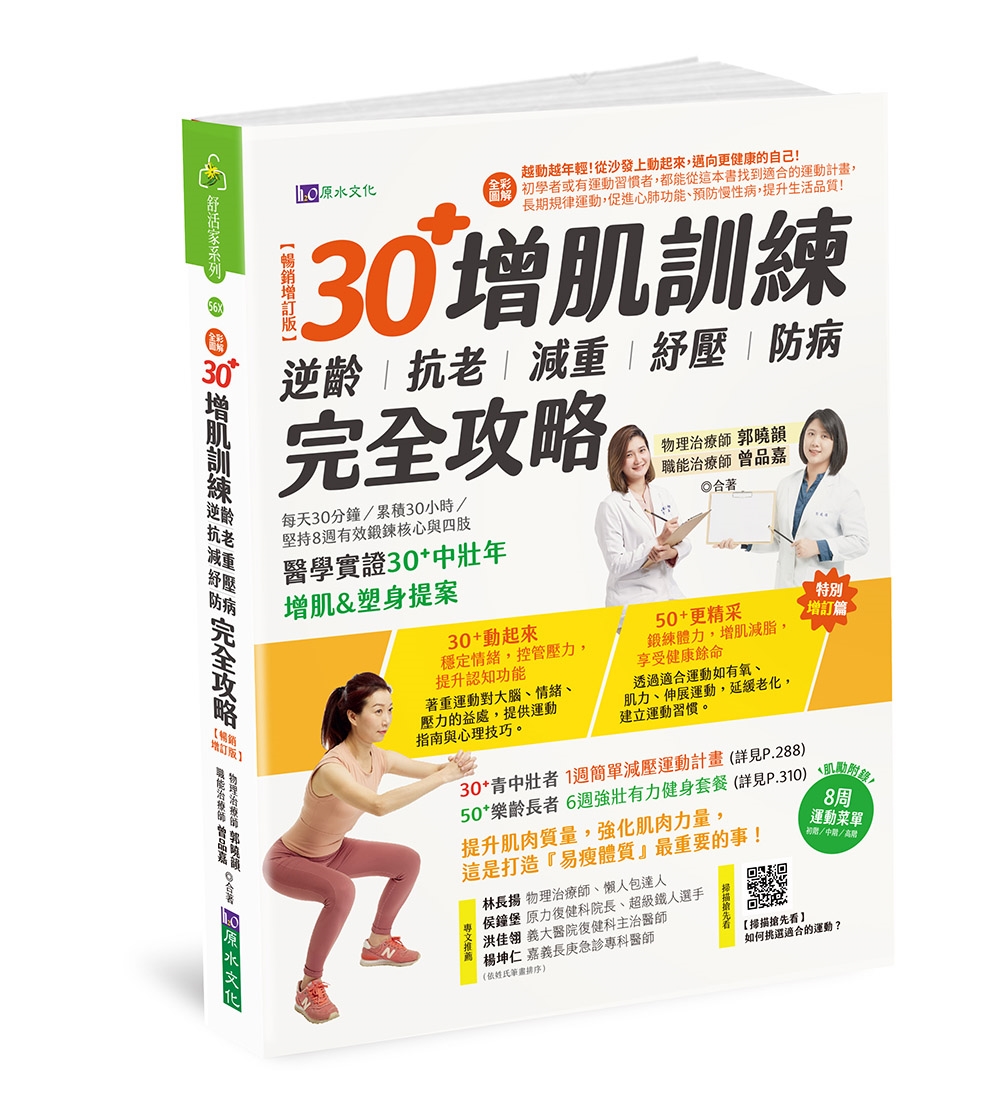 本書從30 歲的身體機能轉折談起,強調增肌的重要性,這次增訂版並延伸到50 歲以上的樂齡族如何透過肌力訓練延緩老化,以及運動對於心理健康及壓力調適的章節。結合物理治療與職能治療的專業知識,提供讀者一套完整的居家鍛鍊指南,幫助不同年齡層的讀者建立規律運動習慣,累積健康資本,進而能夠好好享受健康餘命!