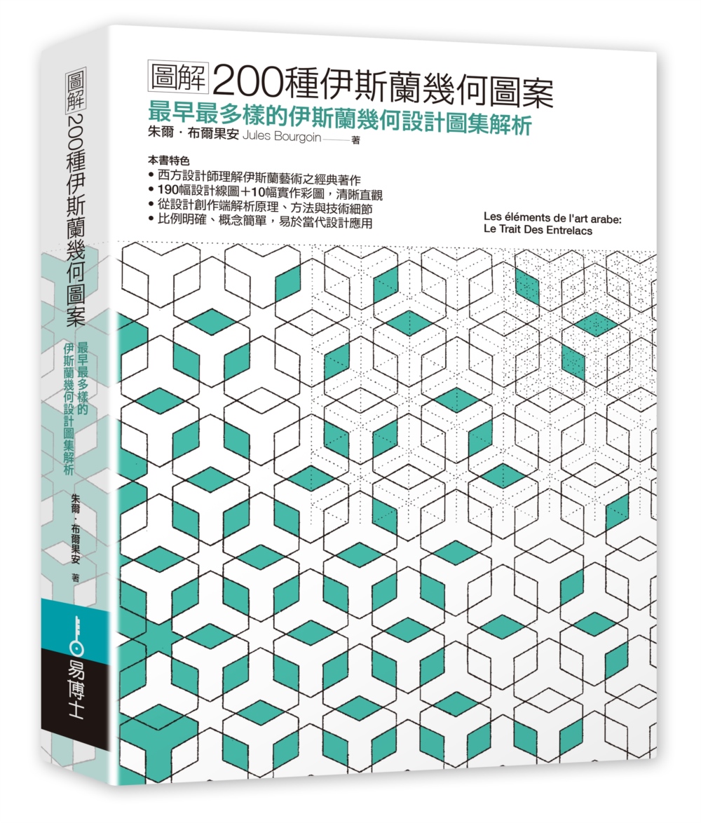 內容簡介 伊斯蘭傳統不描繪人和動物,其藝術以抽象幾何圖案、書法和花卉紋飾為特徵,嚴謹和諧而優雅。與歐洲人文為中心的藝術展現大異其趣。本書特色• 西方設計師理解伊斯蘭藝術之經典著作• 190幅設計線圖+10幅實作彩圖,清晰直觀• 從設計創作端解析原理、方法與技術細節• 比例明確、概念簡單,易於當代設計應用 本書成書於1879年,是現今可見最早有系統調查解析的伊斯蘭幾何設計圖集。作者布爾果安是活躍於當時的法國建築師、設計師及學者,於1874至1875年受法國政府委派前往遠東進行藝術與建築調查。本書輯錄的設計圖涵蓋土耳其、埃及、敘利亞大馬士革、波斯(伊朗)等從中國邊境到歐洲邊境的廣大地區,取自當地匠師的傳統設計,並對這些繁複的交織圖案予以系統化分析,得出這本影響西方深遠的經典之作。不僅直接化為十九世紀末法國新藝術運動(Art Nouveau)的養分與靈感,更成為至今西方設計師理解伊斯蘭裝飾藝術的必經途徑。書中包含190幅設計圖稿和10幅彩色實作圖版,這些圖稿自成美麗雅致的幾何設計,作者不僅在每一幅圖稿中標示設計線,並輔以文字說明,解析繪製原理、方法及工序,揭示隱藏在美麗圖案背後看似繁複、實則秩序井然的幾何結構。拿起鉛筆或打開幾何繪圖工具,跟著工序,一起畫出幾何設計:Step 1 從重複特徵找出基準幾何形狀例如:重複特徵顯示以三角形設計、以方形設計、以菱形設計……等。Step 2 找出基準分布形式例如:分布成六邊形,以八邊形分布、以菱形分布……等。Step 3 設定比例和定位點例如:將頂點分成十二等份,在頂點畫圓,以圓周通過兩條射線的交點畫圓,通過中心畫交叉線……等。Step 4 設定長度&連接對角線例如:以基準三角形底邊的一半為半徑,以每三個分區連接分割點畫對角線的方式畫出星形……等。Step 5 延伸邊線&調整連接元件例如:延伸邊線完成玫瑰花飾,調整連接花飾的五邊形……等。Step 6 成功繪製設計圖例如:原樣描繪、變化創新,新穎原創……等。