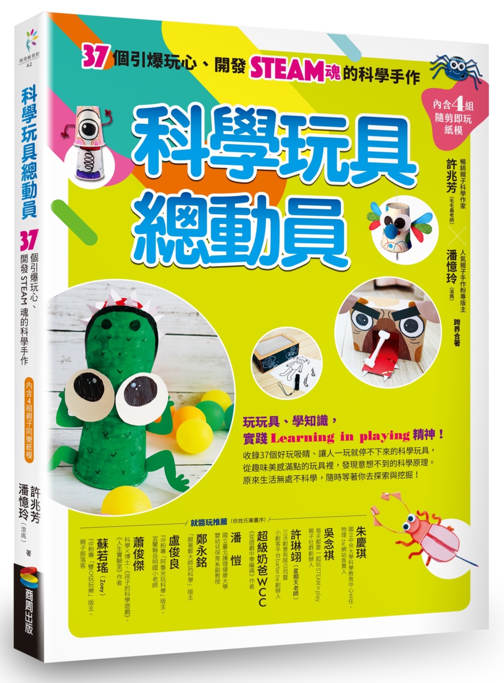 作者介紹 姓名:許兆芳曾任大愛《TRY科學》、《生活裡的科學》科學顧問、公視《下課花路米》科學專家。著有《小學生STEAM實驗室》(合著)、《STEAM大挑戰》、《親子FUN科學》。曾執筆《未來兒童.科學玩一下》專欄、《小孩的科學5:視覺魔法動畫機》及《小孩的科學6:星空投影星象儀》中文特別企劃、《小行星》知識讀本:《聲音捉迷藏》。FB粉絲頁:魅科坊make science fun、中華大眾科學推廣協會姓名:潘憶玲(滾媽)曾任台中市霧峰國小代理代課教師、新竹縣說故事進階人才培訓講師。現為FB粉專「滾妹‧這一家」親子玩手作版主、「親子就醬玩」親子網站駐站作家、「媽媽寶寶懷孕生活網」名人專欄作家、「新一代兒童週報」科學玩具手作作家、「ETtoday播吧」頻道生活專欄駐站作家。著有《滾媽的創意手作百寶箱》(商周出版)。分享的「資料夾做口罩收納盒」影片,創下近60萬次觀看紀錄。更多手作請上FB粉專「滾妹‧這一家」。