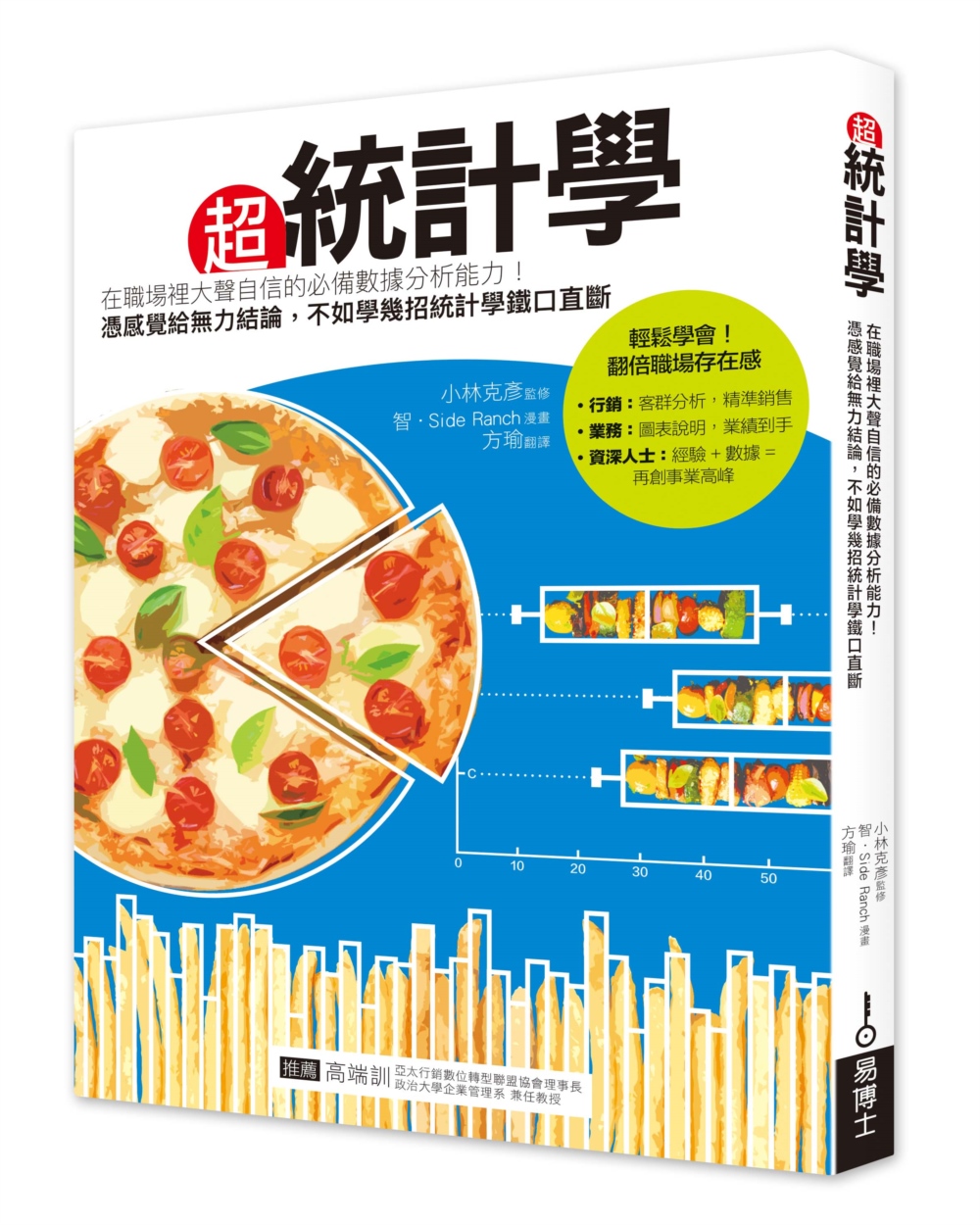 內容簡介 輕鬆學會!翻倍職場存在感 行銷:客群分析,精準銷售 業務:圖表說明,業績到手 資深人士:深厚經驗+具體數據=再創事業高峰 增加郵筒的數量會提高交通事故? 夏天啤酒熱銷,冰淇淋一定也大賣? 沒有經過統計學分析檢證,千萬別輕易提出結論 各行各業莫不重視的統計學,不只是一門學科,更是有效解決問題的方法。不論是分析資料、抽撥重點、釐清關連性、檢視獨立性、預測未來,擬訂策略,乃至AI機器學習,都必須有良好的統計學能力。 而在技術工具成熟、數據分析門檻大幅降低的現在,只要擁有基本的統計學概念、學會工具的使用方法,就能將平日的工作直覺進行數據分析與預測,確保提出的方案都有強而有力的論證依據。 本書以細心說明,循序漸進帶領讀者學會統計學基本規則、記住常用名詞與符號,並穿插漫畫情境凸顯盲點、強化理解關鍵,不知不覺地跨越常見學習障礙,了解統計學全貌與知識核心。 統計是大數據分析的基礎,而我一直在尋找一本「白話」統計學,讓人人可以上手,驀然發現伊人卻在燈火闌珊處。 一般人總是聽統計變色,其實人們只要懂得統計的概念與邏輯,不需要複雜的證明與計算,複雜的計算就交給大數據分析軟體來完成,剩下的就交給《超統計學》。──亞太行銷數位轉型聯盟協會理事長/政治大學企業管理系兼任教授高端訓