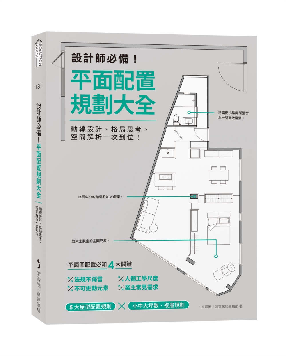 產品目錄 Chapter 1 平面配置規劃必知 Part 1 搞懂法規,不踩雷 Part 2 不可更動的元素 Part 3 人體工學尺度 Part 4 業主常見需求Chapter 2 縱長形格局 Part 1 配置規則 Part 2 不同坪數規劃重點 Point 1 小坪數 Point 2 中坪數 Point 3 大坪數 Point 4 複層Chapter 3 橫長形格局 Part 1 配置規則 Part 2 不同坪數規劃重點 Point 1 小坪數 Point 2 中坪數 Point 3 大坪數 Point 4 複層Chapter 4 方形格局 Part 1 配置規則 Part 2 不同坪數規劃重點 Point 1 小坪數 Point 2 中坪數 Point 3 大坪數 Point 4 複層Chapter 5 多邊形格局 Part 1 配置規則 Part 2 不同坪數規劃重點 Point 1 小坪數 Point 2 中坪數 Point 3 大坪數Chapter 6 不規則格局 Part 1 配置規則 Part 2 不同坪數規劃重點 Point 1 小坪數 Point 2 中坪數 Point 3 大坪數附錄:本書諮詢專業人士