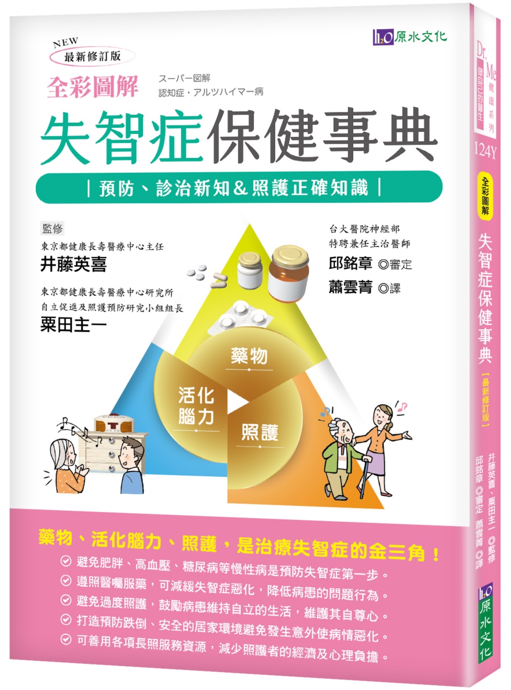 作者介紹 姓名:井藤英喜1970年畢業於京都大學醫學系,1978年取得醫學博士學位(東京大學)。1979年至1981年3月,任職於美國國家老化研究所老年疾病研究中心內分泌科,同年回國擔任東京都老人醫療中心內分泌科主任,1992年升任部主任。1999年轉任東京都多摩老人醫療中心副院長,2002年升任為院長。2005年轉任財團法人東京都保健醫療公社多摩北部醫療中心院長,2006年轉任東京都老人醫療中心院長、東京都老人總合研究所所長,2009年轉任東京都健康長壽醫療中心主任迄今。日本老年醫學會理事、動脈硬化學會評議員、糖尿病學會評議員、糖尿病併發症學會評議員、日本病態營養學會評議員等。專業領域為老年醫學、糖尿病、脂質異常症。姓名:粟田主一1959年生,東京都人。1984年畢業於山形大學醫學系,2001年於東北大學研究所醫學系研究科,擔任精神神經學副教授。2005年任職仙台市立醫院精神科,擔任失智症疾患中心科長。2009年轉任東京都健康長壽醫療中心研究所組長,同時擔任仙台市立醫院精神科失智症疾患中心顧問,以及東北大學研究所醫學系研究科公共衛生學兼任講師。日本老年精神醫學會評議員、日本失智症照護學會評議員、日本精神科診斷學會評議員、日本精神科急救學會評議員、仙台市失智症對策推進會議會長、仙台市自殺對策聯絡協議會會長。出版作品有《美國精神醫學會治療指南概要》(醫學書院,合譯)、《腦的形態與功能》(振興醫學出版社,合著)、《心理醫學事典》(講談社,合著)、《正視自殺》(批評社,合著)等書籍。姓名:蕭雲菁日本國立御茶水女子大學臨床心理學碩士。喜歡閱讀與旅遊,足跡踏遍日本全國。現從事兼職翻譯、口譯,並擔任中國文化大學推廣教育中心日語講師。 審定者簡介邱銘章 醫師憶安診所專任神經專科醫師台大醫院神經部特聘兼任主治醫師台大醫學院神經科兼任教授台灣失智症協會常務監事