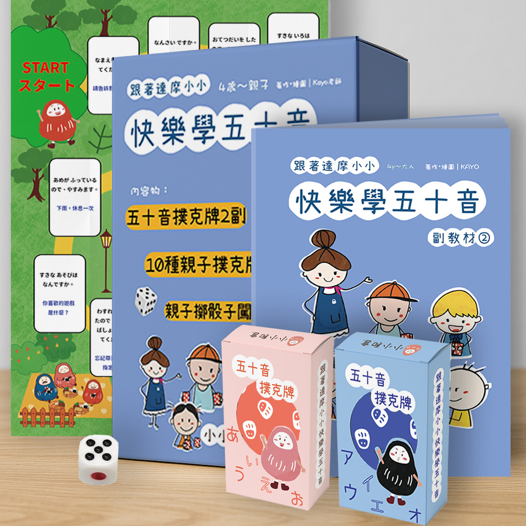 | 商品描述 | 跟著達摩小小快樂學五十音副教材 2:本書為《跟著達摩小小快樂學五十音》的副教材,專為搭配「平假名&片假名撲克牌」所設計,完整收錄10種遊戲玩法。從記憶配對、速度挑戰 |