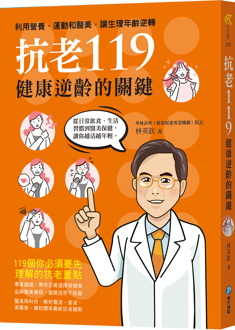 | 商品描述 | 抗老119: 健康逆齡的關鍵, 利用營養、運動和醫美, 讓生理年齡逆轉:老化是必然,但你可以「老得更慢」!透過適當的保健食品及醫美療程,讓你體內、體外都健康>>>老化是自然 |