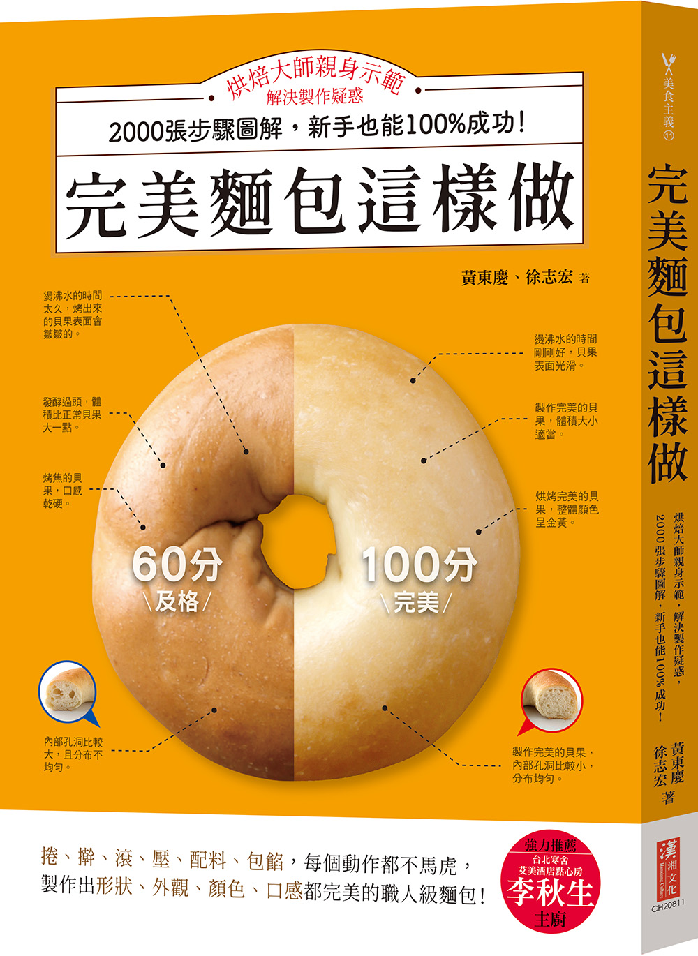 產品目錄 《Chapter 1》製作麵包必備的材料與工具基本材料1─麵粉基本材料2─酵母基本材料3─糖基本材料4─鹽基本材料5─油脂基本材料6─牛奶基本材料7─雞蛋、水基本工具─烤箱、麵包機、刷子、溫度計、攪拌器、擀麵棍、烤模、刮板、磅秤、鋼盆、量杯、量匙、篩網、計時器《Chapter 2》START!麵包的基礎篇基礎篇01麵包種類與特徵介紹基礎篇02製作出好吃麵包的4大關鍵基礎篇03增加麵包風味的2大絕招─餡料和醬料《Chapter 3》麵包基本程序的失敗問題與解決方法●基本程序1:備料●基本程序2:攪拌●基本程序3:發酵●基本程序4:分割●基本程序5:滾圓●基本程序6:整形●基本程序7:烘烤《Chapter 4》這樣做不NG!超完美麵包製作日式白吐司【變化款】全麥吐司【變化款】咖啡核果吐司【變化款】紅豆杏仁捲吐司不失敗的問題與解答Q&AQ1為什麼烤不出表皮呈金黃色的吐司? Q2為什麼吐司皮上層塌陷變皺?Q3吐司烤好後內部有氣洞?Q4為什麼烤出來的吐司皮又硬又厚?Q5為什麼烤出來的吐司堅果掉了一堆?原味菠蘿【變化款】巧克力菠蘿【變化款】奶酥菠蘿不失敗的問題與解答Q&AQ1為什麼烤出來的菠蘿皮沒有裂紋?Q2為什麼奶酥餡太軟?Q3為什麼菠蘿麵包吃起來不夠鬆軟?Q4為什麼加入可可粉都拌不均勻?原味貝果【變化款】抹茶紅豆【變化款】芝麻貝果【變化款】伯爵紅茶貝果不失敗的問題與解答Q&AQ1 為什麼烤出來的貝果表面都皺皺的?Q2 烤出來的貝果為什麼硬得像石頭?Q3 貝果為什麼吃起來沒嚼勁?Q4 烤完後的貝果為什麼銜接處會散開?法式長棍麵包【變化款】麥穗麵包【變化款】法式短棍麵包不失敗的問題與解答Q&AQ1為什麼做出來的法式麵包是鬆軟的不是酥脆的?Q2如果家裡沒有蒸氣怎麼辦?Q3為什麼烤出來的法棍切面氣孔很少?Q4為什麼烤出來的法棍切面氣孔很大?布里歐【變化款】香橙布里歐【變化款】霜降奶油布里歐【變化款】起士海鮮布里歐不失敗的問題與解答Q&AQ1為什麼布里歐麵團無法成團?Q2為什麼布里歐很難整形?Q3為什麼烤好後的布里歐容易縮腰?Q4 為什麼有時烤起來焦脆,有時卻柔軟?聖誕麵包【變化款】潘娜多妮【變化款】史多倫麵包不失敗的問題與解答Q&AQ1為什麼潘娜多妮沒發酵成功?Q2為什麼潘娜多妮烤不太上色?Q3為什麼潘娜多妮麵團無法成團?Q4為什麼聖誕麵包需加大量酒漬果乾?義大利拖鞋麵包【變化款】義式洋蔥拖鞋麵包【變化款】羅勒拖鞋麵包【變化款】番茄黑橄欖佛卡夏不失敗的問題與解答Q&AQ1為什麼佛卡夏烤不上色?Q2為什麼佛卡夏麵團無法發酵很大?Q3為什麼烤出來的麵包沒有口感?羅宋麵包【變化款】香蒜羅宋麵包【變化款】南瓜羅宋麵包不失敗的問題與解答Q&AQ1為什麼烤出來的羅宋麵包口感硬梆梆?Q2為什麼羅宋麵包都會烤過頭?Q3為什麼羅宋麵包發酵後變很大?為什麼羅宋麵包不太會發酵?德國鄉村裸麥麵包【變化款】裸麥芝麻麵包【變化款】裸麥莓果麵包不失敗的問題與解答Q&AQ1為什麼裸麥麵包太乾無口感?Q2為什麼裸麥三邊都會鼓起來不平,厚度不均勻?Q3為什麼我做起來的裸麥麵包內部組織太密?沒氣孔?Q4為什麼烤好的裸麥麵包底部會裂開?英國司康【變化款】蔥花起司培根司康【變化款】蔓越莓司康【變化款】迷迭香司康不失敗的問題與解答Q&AQ1為什麼司康不發,且烘烤後不高?Q2為什麼做好的司康口感不夠鬆軟?Q3為什麼司康加入果乾後無法長很高?Q4如何讓烘烤後的司康完美上色?辮子麵包【變化款】克寧姆辮子麵包【變化款】蔥花辮子麵包不失敗的問題與解答Q&AQ1麵團整形到一半辮子就斷了?Q2麵包烤好了,可是辮子變形了?Q3為什麼烤好的克寧姆餡料都溢在烤盤上了?Q4為什麼烤完後蔥花都焦黑了?毛毛蟲麵包【變化款】抹茶紅豆毛毛蟲麵包【變化款】熱狗毛毛蟲麵包不失敗的問題與解答Q&AQ1為什麼毛毛蟲麵包都烤不上色?Q2為什麼烤好的抹茶紅豆毛毛蟲麵包,裡面的紅豆會掉出來?Q3為什麼做出來的熱狗毛毛蟲麵包都會頭尾大小比例落差很大?Q4為什麼麵團都無法包覆熱狗?