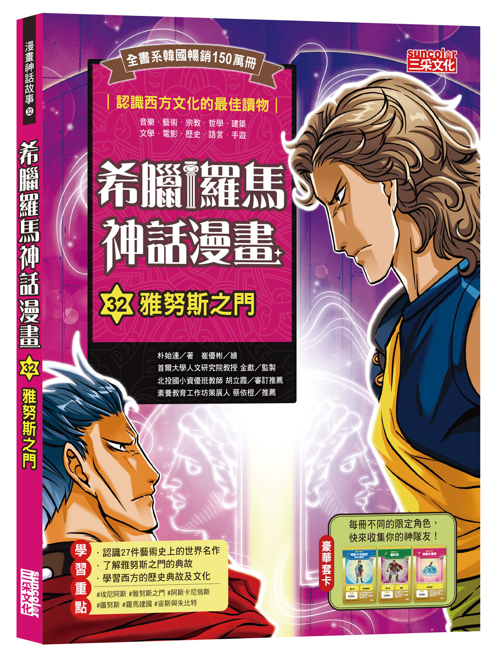 | 簡介 / | 希臘羅馬神話漫畫 32: 雅努斯之門:★認識西方文化的最佳讀物★全書系韓國暢銷150萬冊★【豪華神祇卡】每冊贈送3個限定角色,快來收集你的神隊友!埃涅阿斯建國的腳步尚未 |