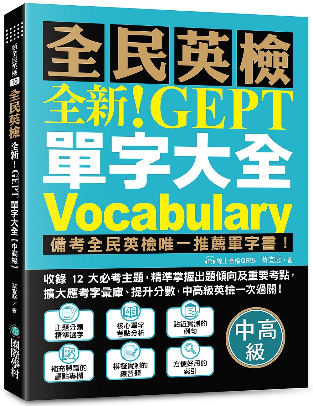 商品描述 | 全新! NEW GEPT全民英檢單字大全 中高級: 備考全民英檢唯一推薦單字書! 收錄12大必考主題, 精準掌握出題傾向及重要考點, 擴大應考字彙庫、提升分數, 中高級英檢一次過關! ( |