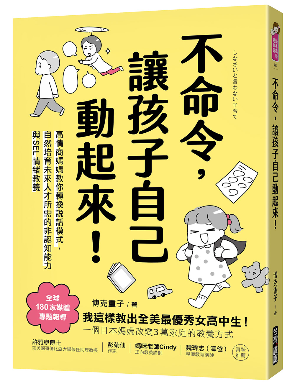 而我在這本書中提出「不命令的教養」,也是基於我對這套「非認知能力育兒」深入調查、研究與實踐的總結,整理出最簡單可行的方法,讓大家能輕鬆運用於生活場景中。