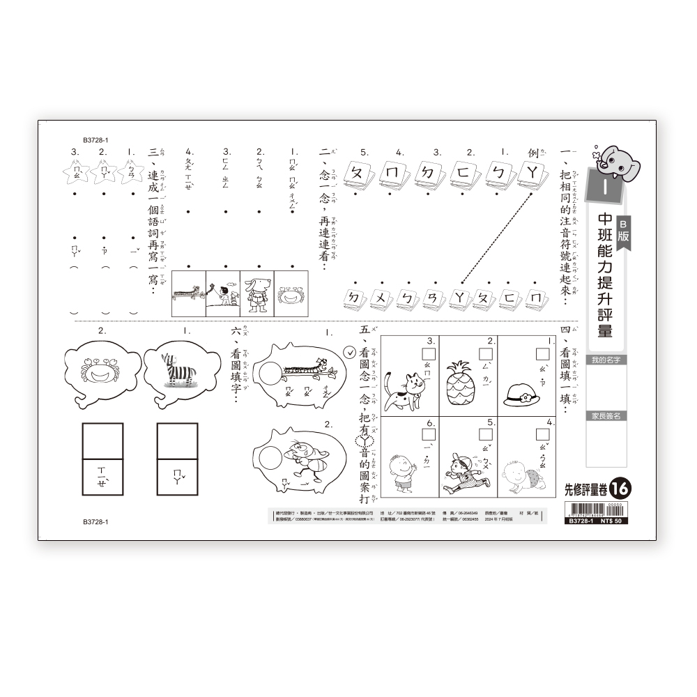 簡介 / | 先修評量卷 16: 中班能力提升:本練習卷結合國音之37個注音符號及22個結合韻符,編列相關之評量練習,讓幼兒習作,增進幼兒語文基礎能力.:誠品以「人文、藝術、創意、生活」 |